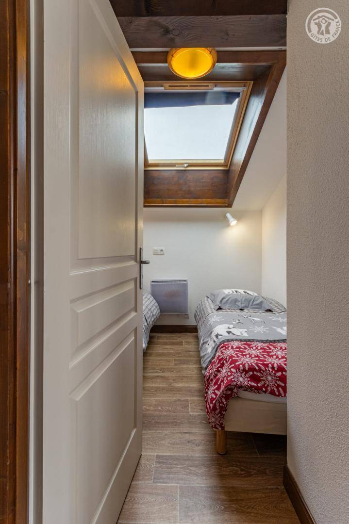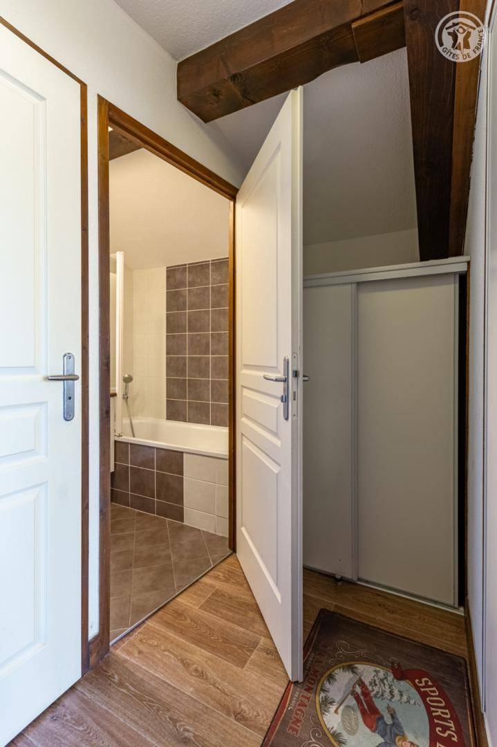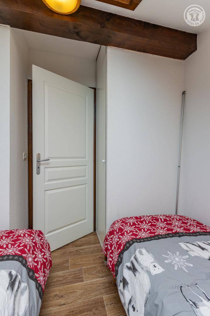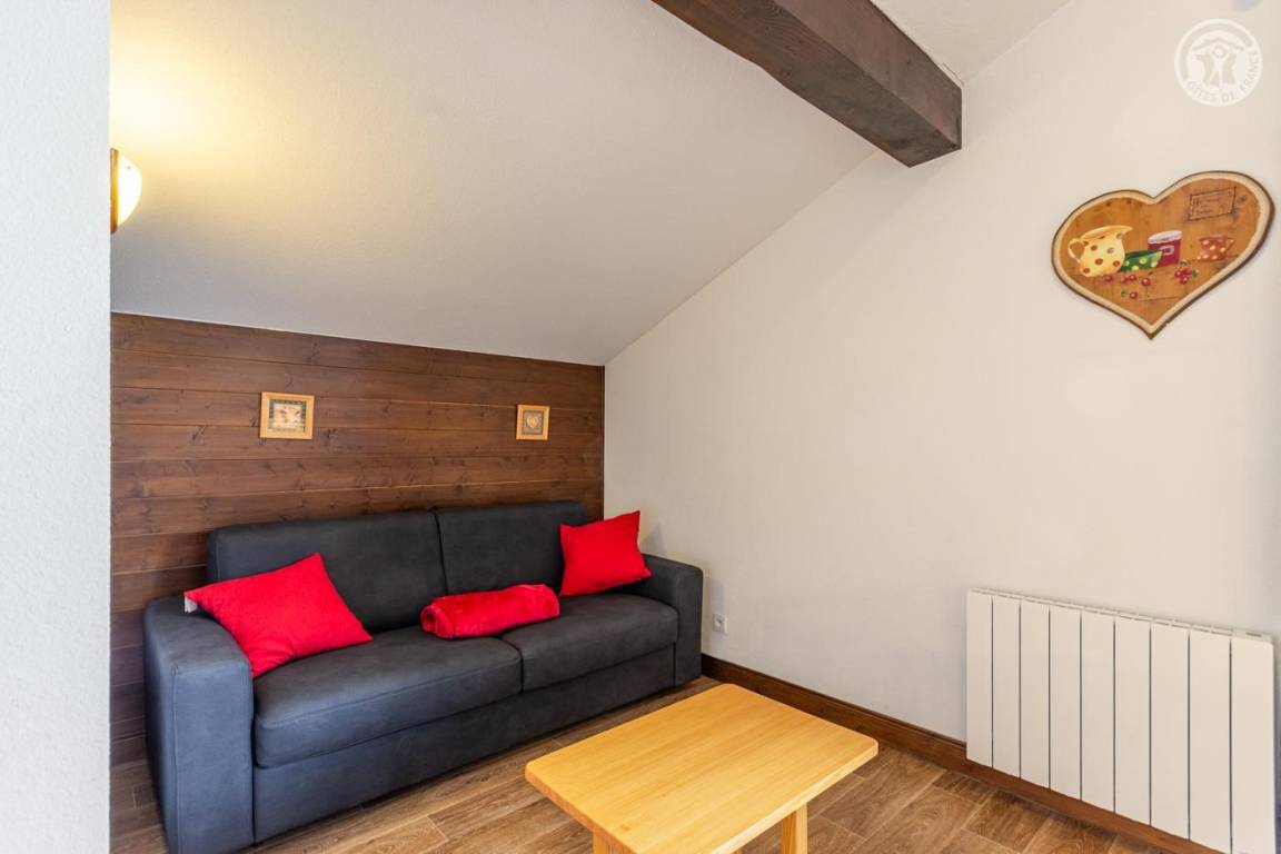 Apartment auf der 5. Ebene der Residenz mit Aufzug, einschließlich Eingang, Wohnküche (ausziehbares Sofa 140 x 190 cm für 2 Personen), Schlafzimmer mit Öffnung im Dach (2 Einzelbetten 80 x 190 cm), Badezimmer ( Badewanne). Separates WC. Balkon. Box im Keller der Residenz (1 Auto). Gemeinschaftspool (freier Zugang), Sauna (kostenpflichtiger Zugang nach Reservierung), Zugang zur Waschmaschine im Gemeinschaftswaschraum (gegen Gebühr an der Rezeption der Residenz erhältlich), Billard und Tischfußball.