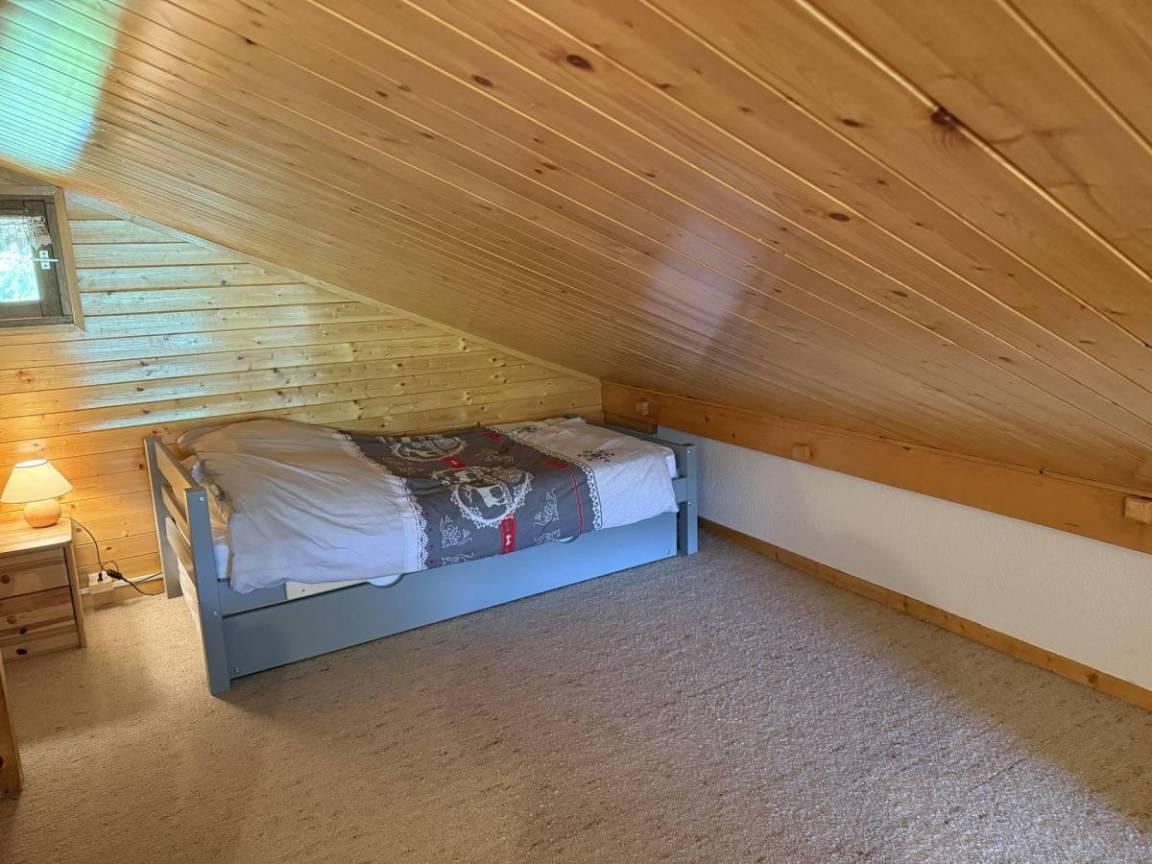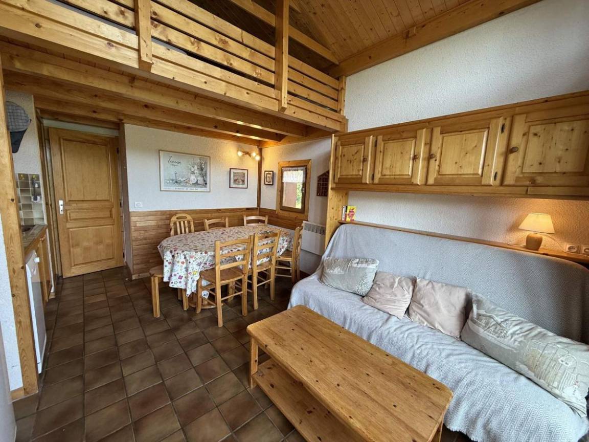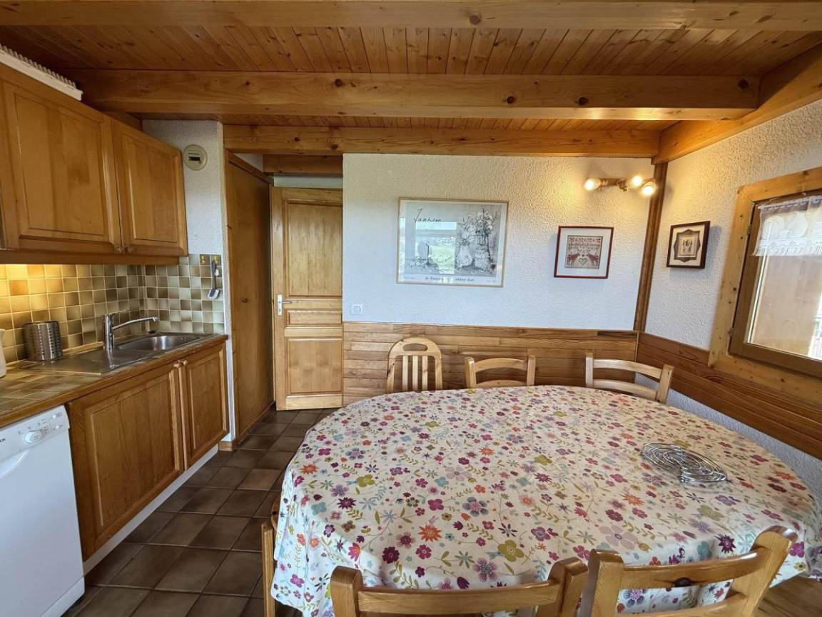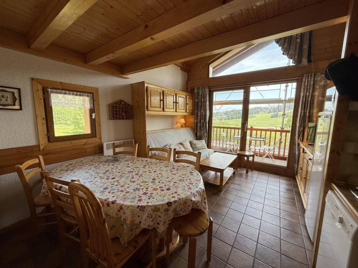 Das Chalet Cristal 2 liegt ideal in der Nähe der Wanderwege im Ferienort Les Saisies. Die Geschäfte liegen 200 Meter von der Residenz entfernt. Sie werden die ruhige und warme Atmosphäre der Vermietung zu schätzen wissen. Die Abwesenheit von Menschen gegenüber garantiert einen Tapetenwechsel und eine Aussicht. Fläche von ungefähr 52 m² enthält 22 m² unter 1,80 m. 2te Etage. Orientierung : Ost, Süd. Blick skipisten und Berg (Massif du Beaufortain). Wohnzimmer. Schlafzimmer mit Doppelbett. Mansardenzwischengeschoss (-1,80 m) mit Doppelbett, Einzelbett, Ausziehbett. Kochnische mit Kaffeemaschine, Toaster, Geschirrspülmaschine, Mikrowellenherd, Herdplatten, Kühlschrank. Waschräume mit Dusche. separates WC. Balkon.