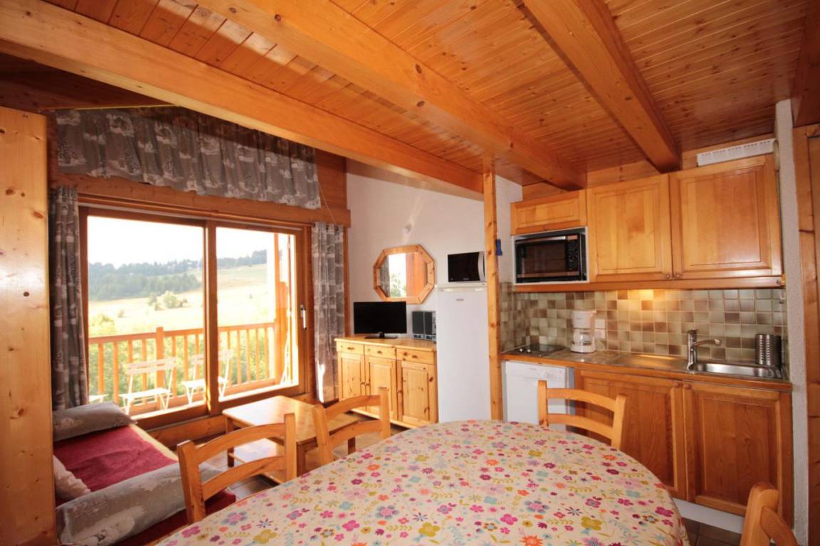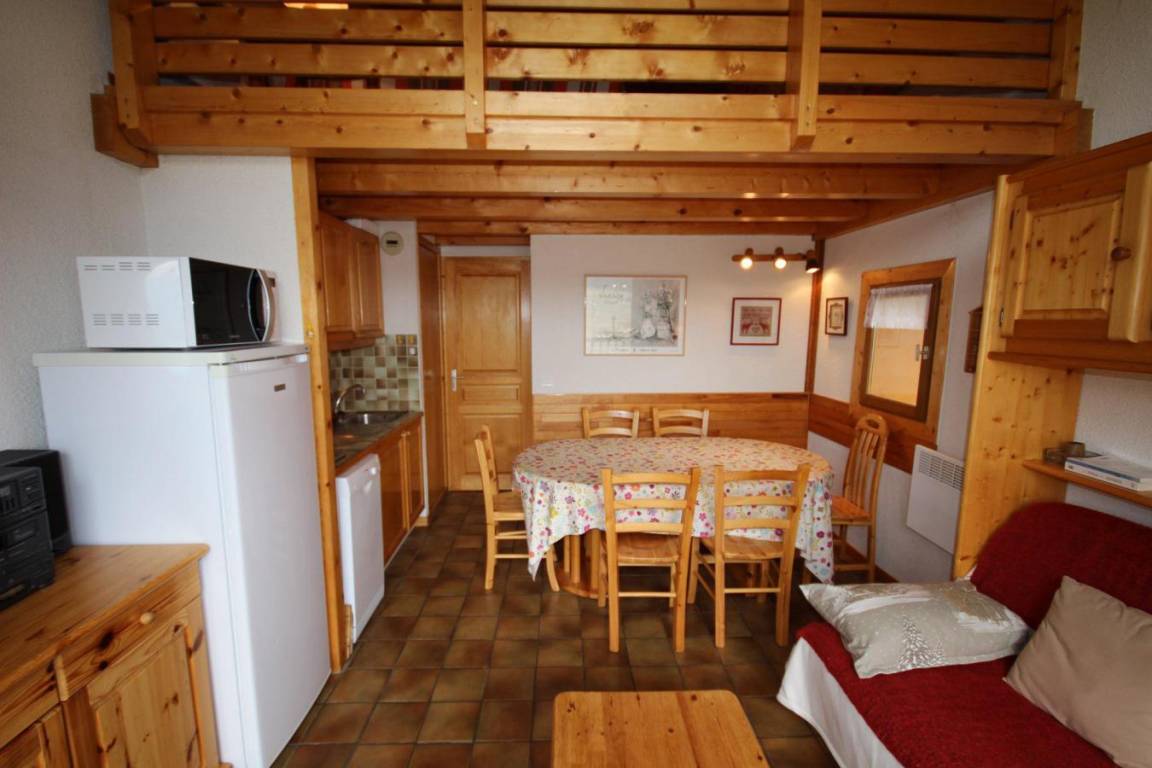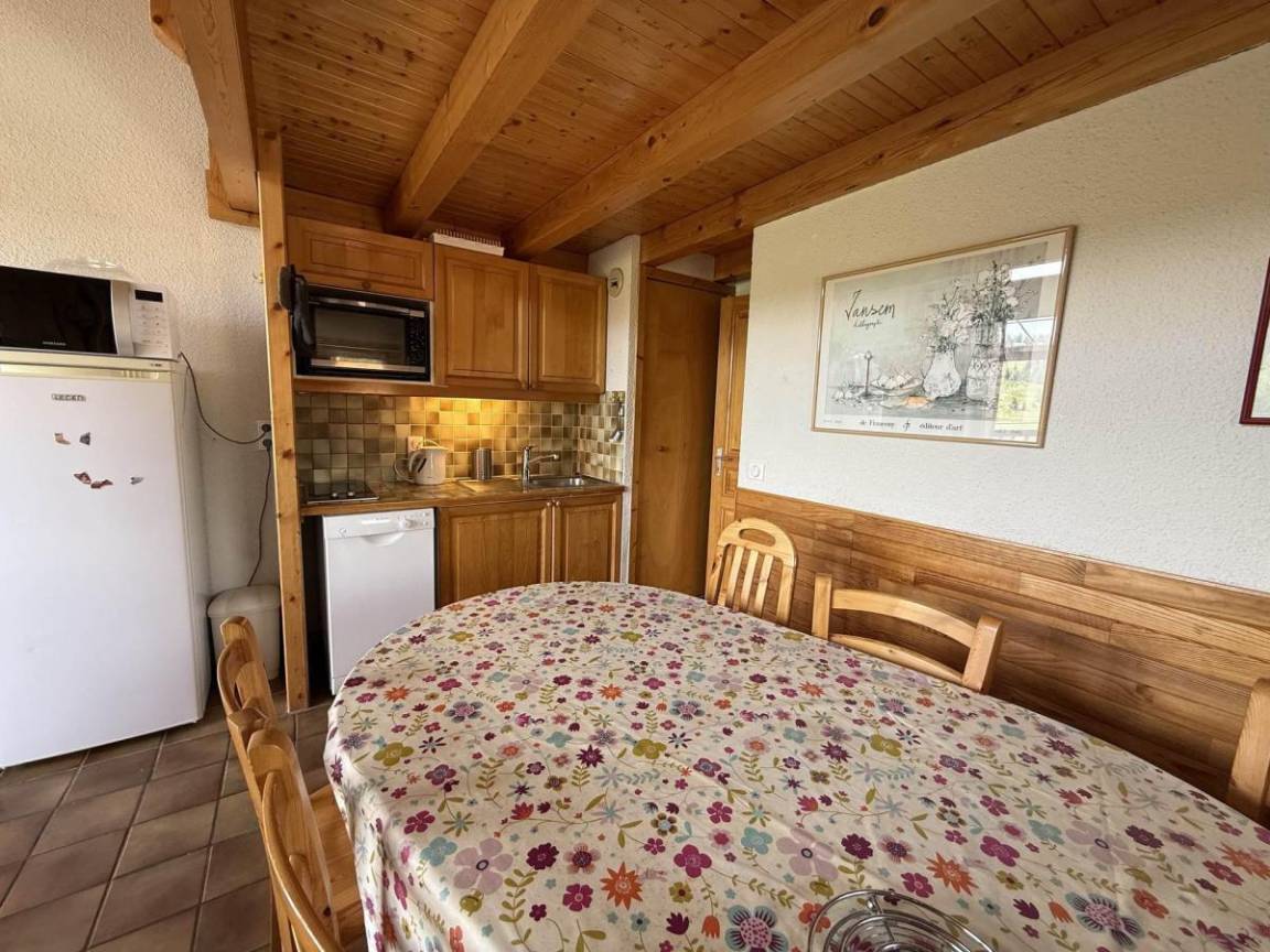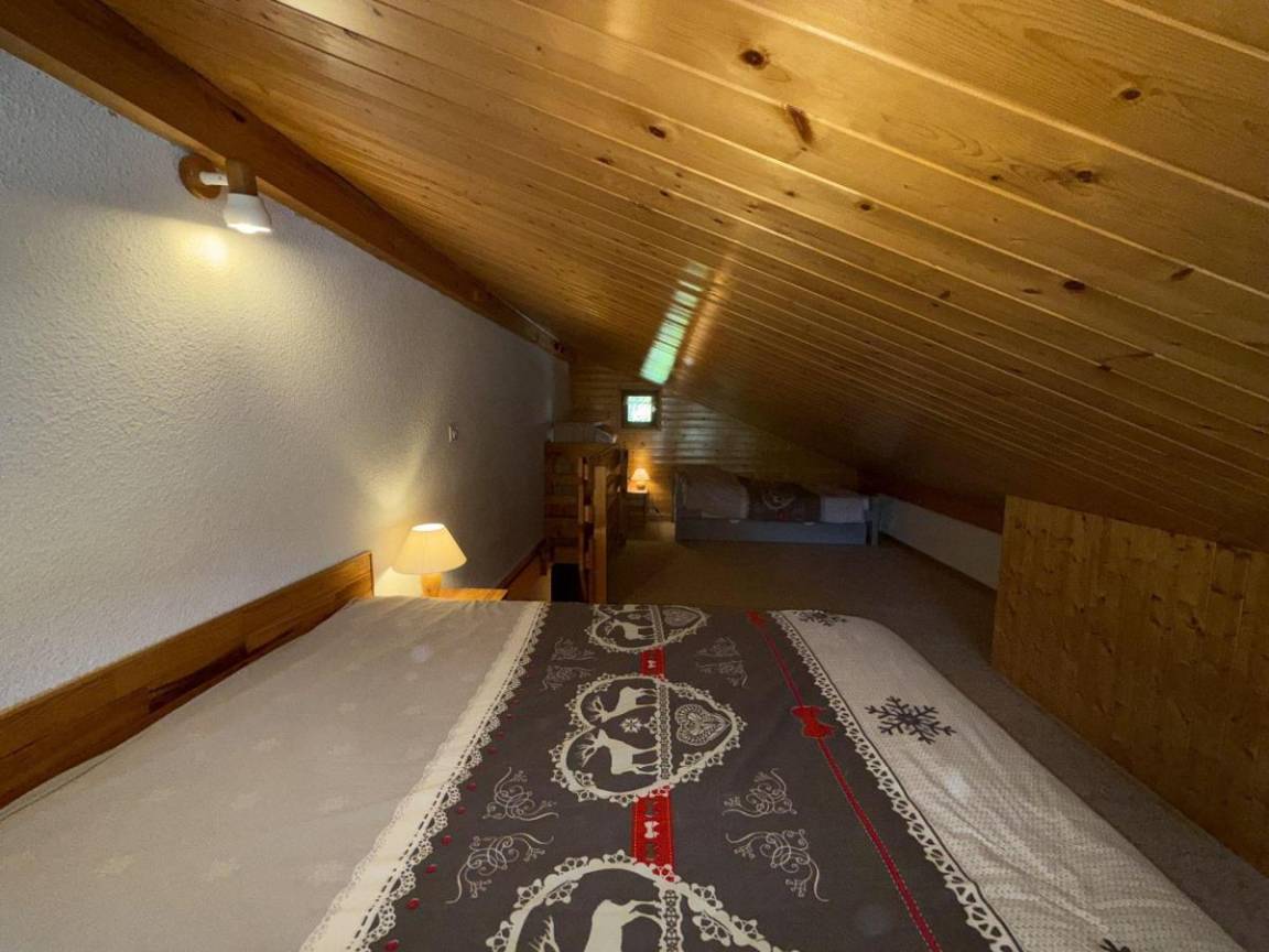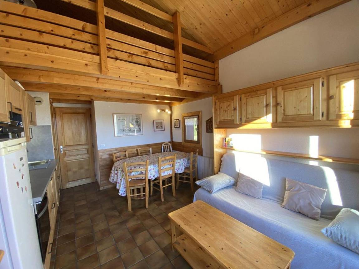 Das Chalet Cristal 2 liegt ideal in der Nähe der Wanderwege im Ferienort Les Saisies. Die Geschäfte liegen 200 Meter von der Residenz entfernt. Sie werden die ruhige und warme Atmosphäre der Vermietung zu schätzen wissen. Die Abwesenheit von Menschen gegenüber garantiert einen Tapetenwechsel und eine Aussicht. Fläche von ungefähr 52 m² enthält 22 m² unter 1,80 m. 2te Etage. Orientierung : Ost, Süd. Blick skipisten und Berg (Massif du Beaufortain). Wohnzimmer. Schlafzimmer mit Doppelbett. Mansardenzwischengeschoss (-1,80 m) mit Doppelbett, Einzelbett, Ausziehbett. Kochnische mit Kaffeemaschine, Toaster, Geschirrspülmaschine, Mikrowellenherd, Herdplatten, Kühlschrank. Waschräume mit Dusche. separates WC. Balkon.