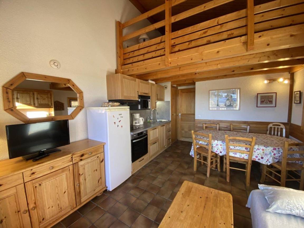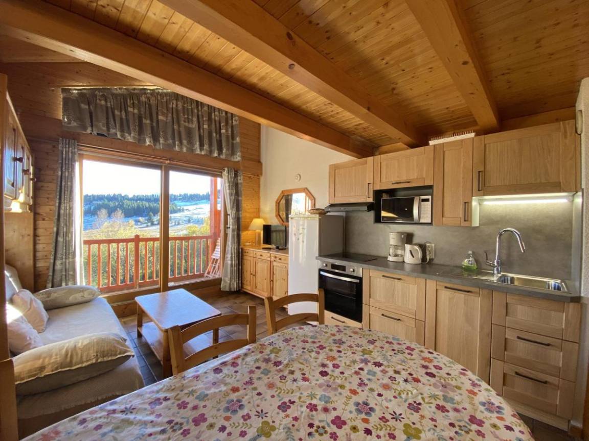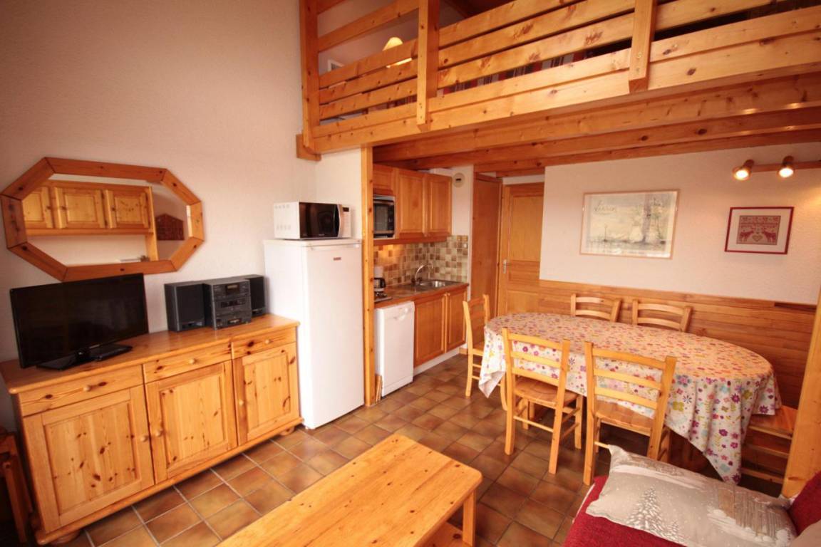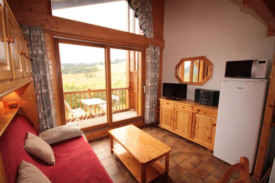 Das Chalet Cristal 2 liegt ideal in der Nähe der Wanderwege im Ferienort Les Saisies. Die Geschäfte liegen 200 Meter von der Residenz entfernt. Sie werden die ruhige und warme Atmosphäre der Vermietung zu schätzen wissen. Die Abwesenheit von Menschen gegenüber garantiert einen Tapetenwechsel und eine Aussicht. Fläche von ungefähr 52 m² enthält 22 m² unter 1,80 m. 2te Etage. Orientierung : Ost, Süd. Blick skipisten und Berg (Massif du Beaufortain). Wohnzimmer. Schlafzimmer mit Doppelbett. Mansardenzwischengeschoss (-1,80 m) mit Doppelbett, Einzelbett, Ausziehbett. Kochnische mit Kaffeemaschine, Toaster, Geschirrspülmaschine, Mikrowellenherd, Herdplatten, Kühlschrank. Waschräume mit Dusche. separates WC. Balkon.