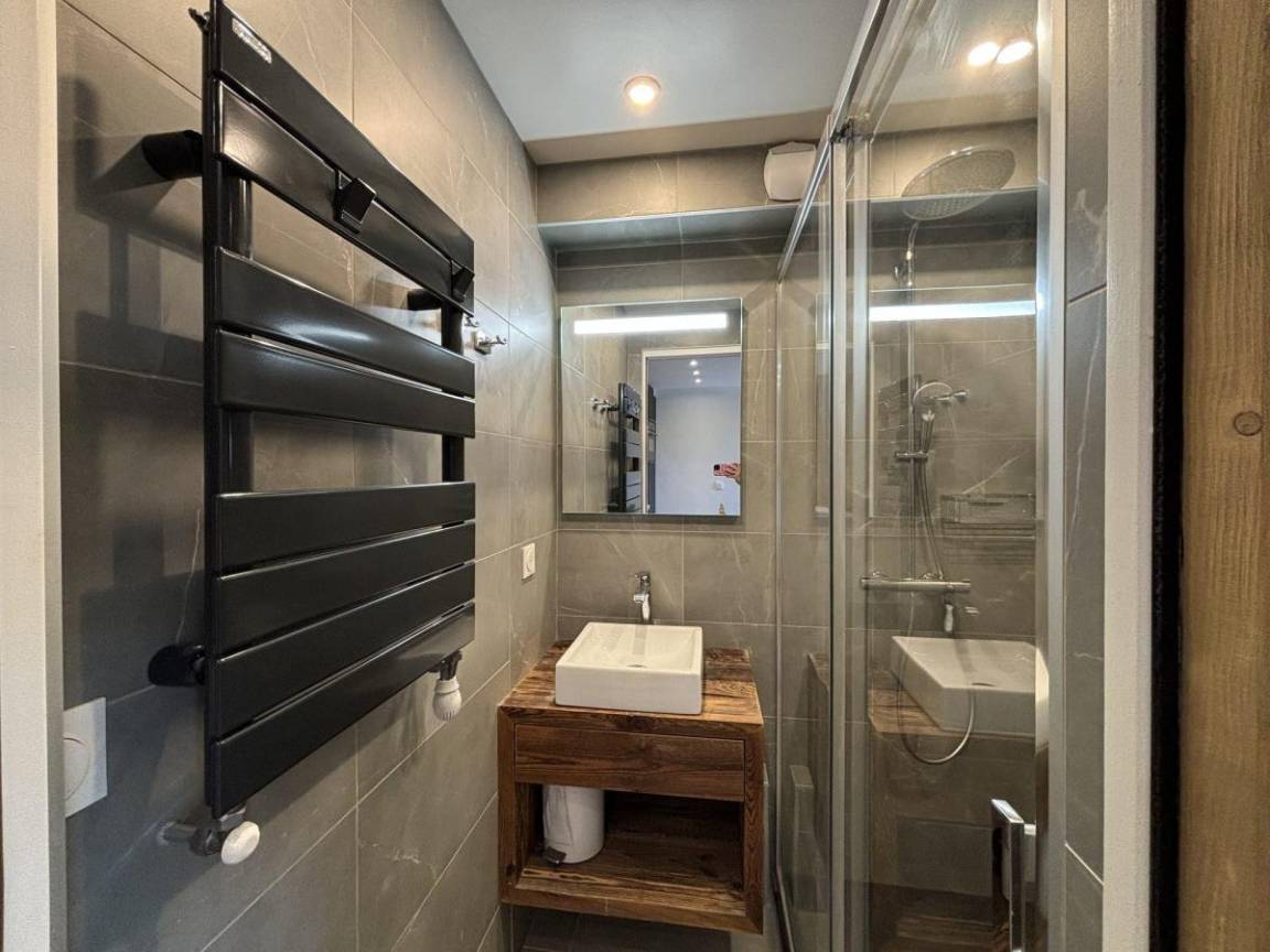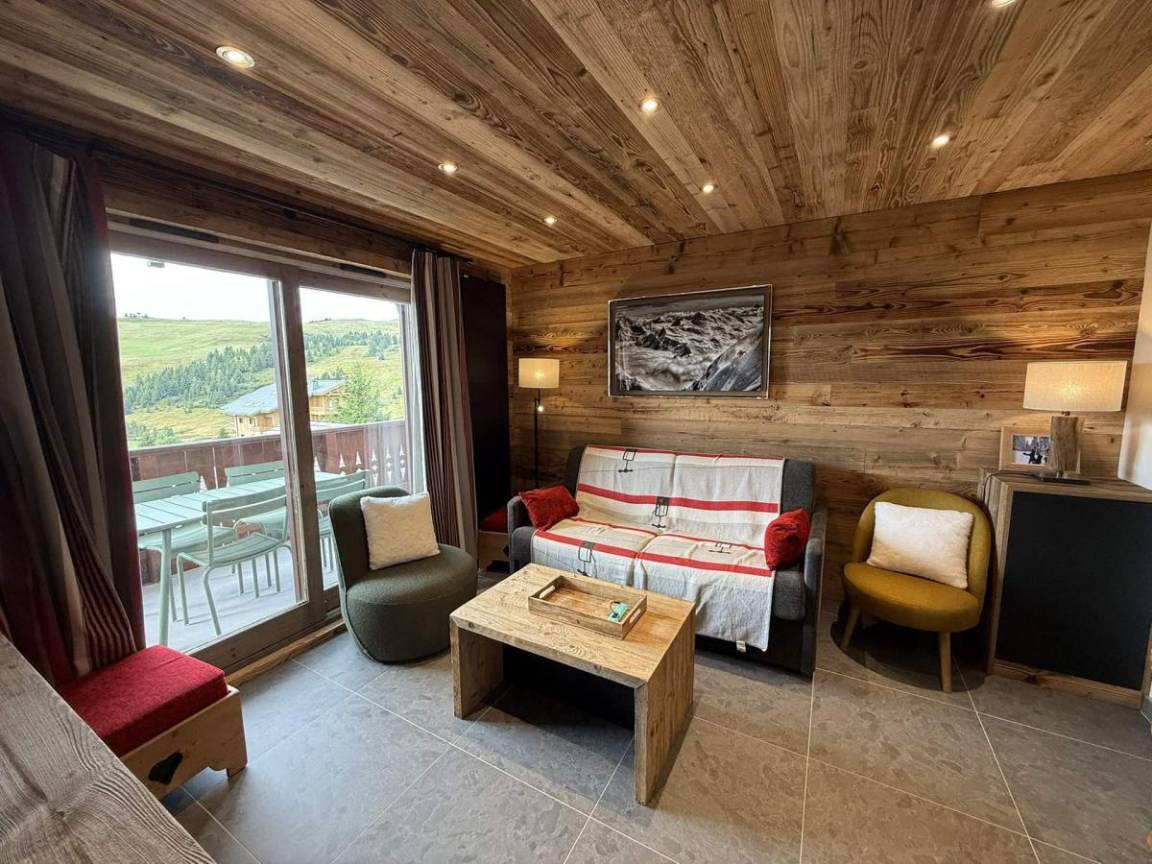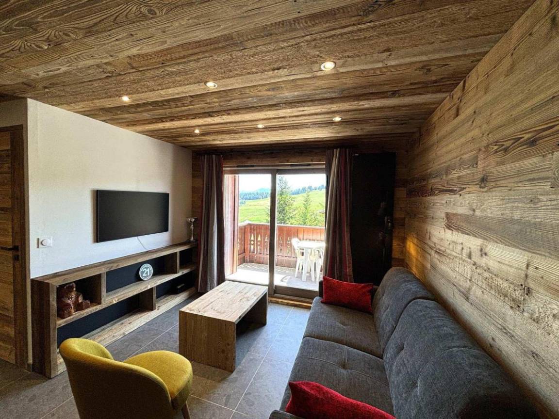 Die Residenz Le Village des Lapons H besteht aus 68 Wohnungen, verteilt auf 3 Chalets und vier Stockwerke (mit Aufzug) im Ferienort Les Saisies. Diese kleine Residenz im savoyischen Stil profitiert von einer außergewöhnlichen Lage im Viertel Chapelle. Sie liegt 100 m von den Skipisten und 200 m von den Skiliften entfernt. Das Dorfzentrum und die Geschäfte liegen 700 m vom Gebäude entfernt. Fläche von ungefähr 40 m². 2te Etage. Orientierung : Süd, West. Blick panorama. Wohnzimmer mit Ausziehschlafcouch für 2 Personen. Schlafzimmer mit Dusche, Doppelbett (160). Schlafzimmer mit 2 Einzelbetten. Kochnische mit Kaffeemaschine, kleiner Backofen mit Mikrowellenfunktion, Toaster, Dunstabzugshaube, Geschirrspülmaschine, Glaskeramikkochfelder, Kühlschrank. Badezimmer mit Badewanne. Waschräume mit Dusche. separates WC. Balkon.