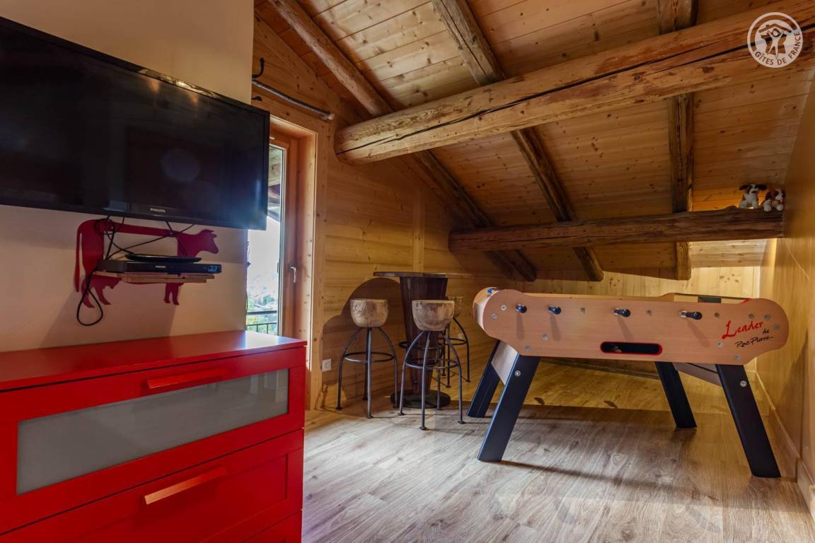 „Très beau chalet, spacieux et confortable. Gros plus avec les salles de bain et toilettes attenants à chacune des chambres. Également un spa de nage et sauna extérieurs offrant une très belle vue sur les montagnes, très appréciés après une journée de ski. Accueil très chaleureux d Emmanuelle.“
