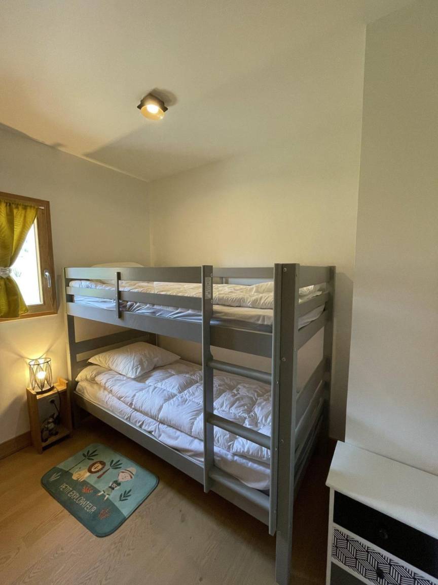 Das Chalet Fleur des Cimes liegt nur 600 Meter vom Zentrum des Resorts und seinen Geschäften entfernt. Seine außergewöhnliche Aussicht auf die Berge, Beaufortain und Pierra Menta wird Ihnen einen unvergesslichen Aufenthalt bescheren. Fläche von ungefähr 60 m². Orientierung : Ost, Süd, West. Blick berg. Wohnzimmer. Schlafzimmer mit 2 Stockbetten (90). Schlafzimmer mit Balkon, Doppelbett (140). Schlafzimmer mit Doppelbett (140), . Kochnische mit Fonduegerät, Raclettegerät, Wasserkocher, Waschmaschine, Geschirrspülmaschine, Mikrowellenherd. Terrasse mit Gartentisch und -stühle. Die oberen Betten sind nicht für Kinder unter 6 Jahren geeignet.