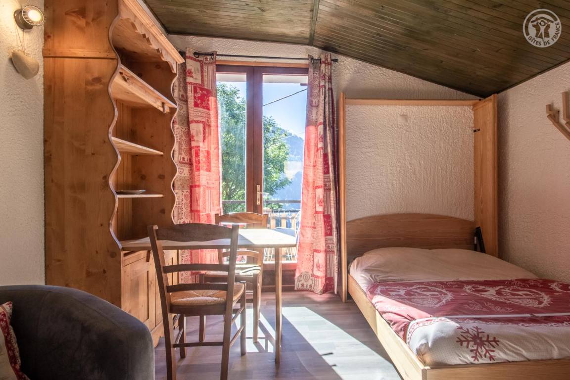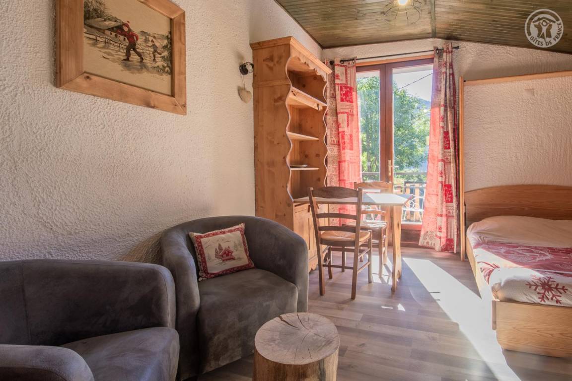 Haus mit 4 Gîtes auf mehreren Ebenen. Im 1. Stock des Hauses, Zugang zum Studio über wenige Stufen. Küche, Badezimmer (Dusche + WC), Wohnzimmer mit Balkon (1 Schrankwandbett für 2 Personen, 140x190 cm). Terrasse von außen zugänglich. Das Bett ist gemacht, wenn Bettwäsche gemietet wird. Gemeinsamer Garten. Gemeinsamer Swimmingpool mit kostenlosem Zugang nach Zeitplan. Privater Parkplatz. Skibus 100m entfernt. Miete von Bettwäsche, Handtüchern und Endreinigung: Wenden Sie sich direkt an die Eigentümer. Tiere auf Anfrage und nach Zustimmung des Eigentümers.