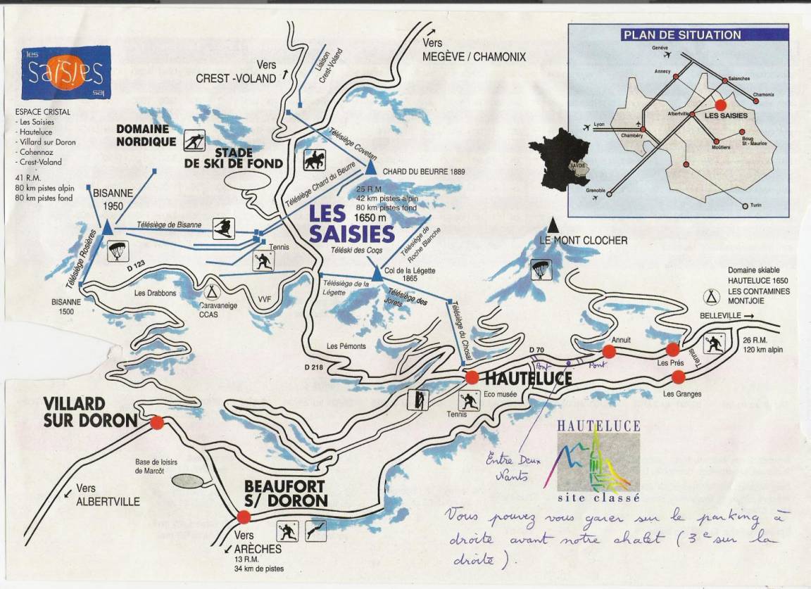 An das Haus der Eigentümer angrenzendes Haus. Ferienhaus im 1. Stock. : Wohnzimmer mit Küchenbereich, 3 Schlafzimmer. (1 Doppelbett / 1 Doppelbett / 2 Einzelbetten), s. Wasser, Balkon, Garage mit 2 Stellplätzen, Grundstück, Außen-Whirlpool für 6 Personen. Ski Hauteluce, Verbindung nach Les Saisies Espace Diamant 1 km, Verbindung nach Les Contamines 3,5 km. Grundfläche (73 m²). Im Winter kostenloser Shuttle vor Ort.