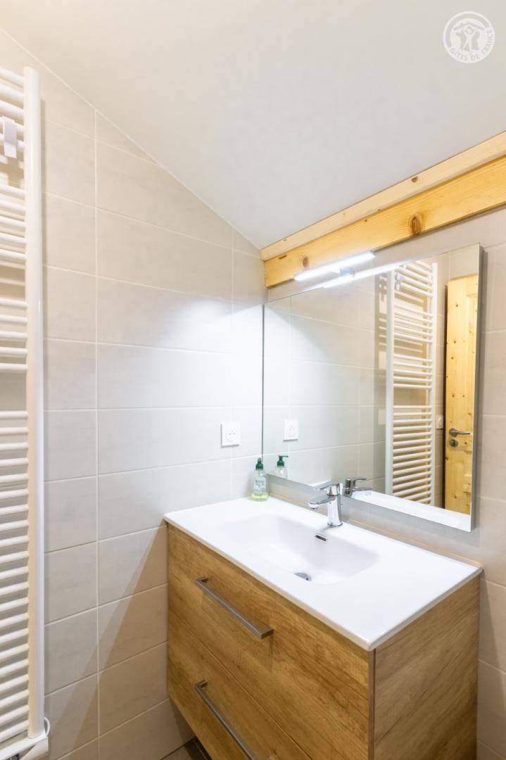 Apartment im 1. Stock der Residenz (Zugang über 2 Außentreppen vom Parkplatz aus), bestehend aus einem Eingang, einem Wohn-/Küchenbereich (kein Fernseher – Bluetooth-Lautsprecher – Holzofen) mit Zugang zu einer Balkon-Terrasse, 1 Schlafzimmer ( 2 Einzelbetten (80x190 cm) mit eigenem Bad (Dusche), 1 Schlafzimmer (1 Doppelbett 160x200 cm), ein Badezimmer (Badewanne mit Duschstange), separates WC. Wäschetrockner. Skidepot im 100 m entfernten Gebäude, neben der Shuttle-Haltestelle.