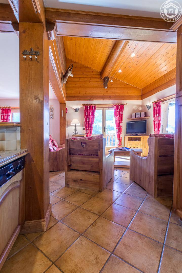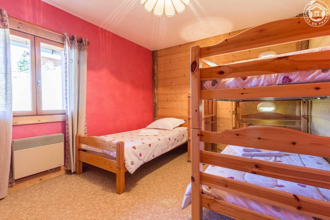 Individuelles Chalet. 1. Stock (Zugang auf gleicher Ebene): Wohnzimmer-Küche Loungebereich, WLAN, 3 Schlafzimmer (1 Doppelbett / 1 Doppelbett 160 x 200 cm / 3 Einzelbetten davon 2 Etagenbetten), Badezimmer (Badewanne), Badezimmer ( ebenerdige Dusche). Balkon + Terrasse (Plancha im Winter und Sommer verfügbar) + Grundstück. Handtücher + Bettlaken inklusive + gemachte Betten. Skifahren Hauteluce/les Saisies/Espace Diamant 1,5 km, Hauteluce-Valjoly/les Contamines-Montjoie 9 km, les Saisies 9,5 km.