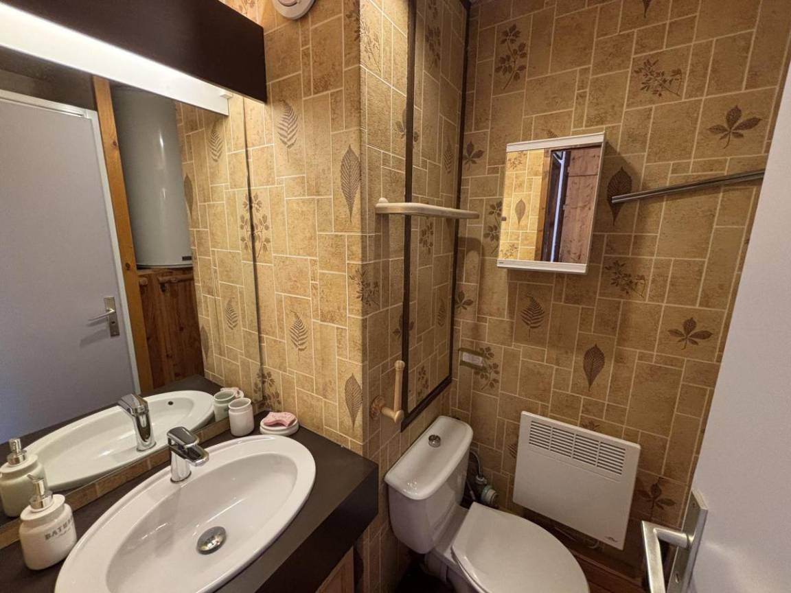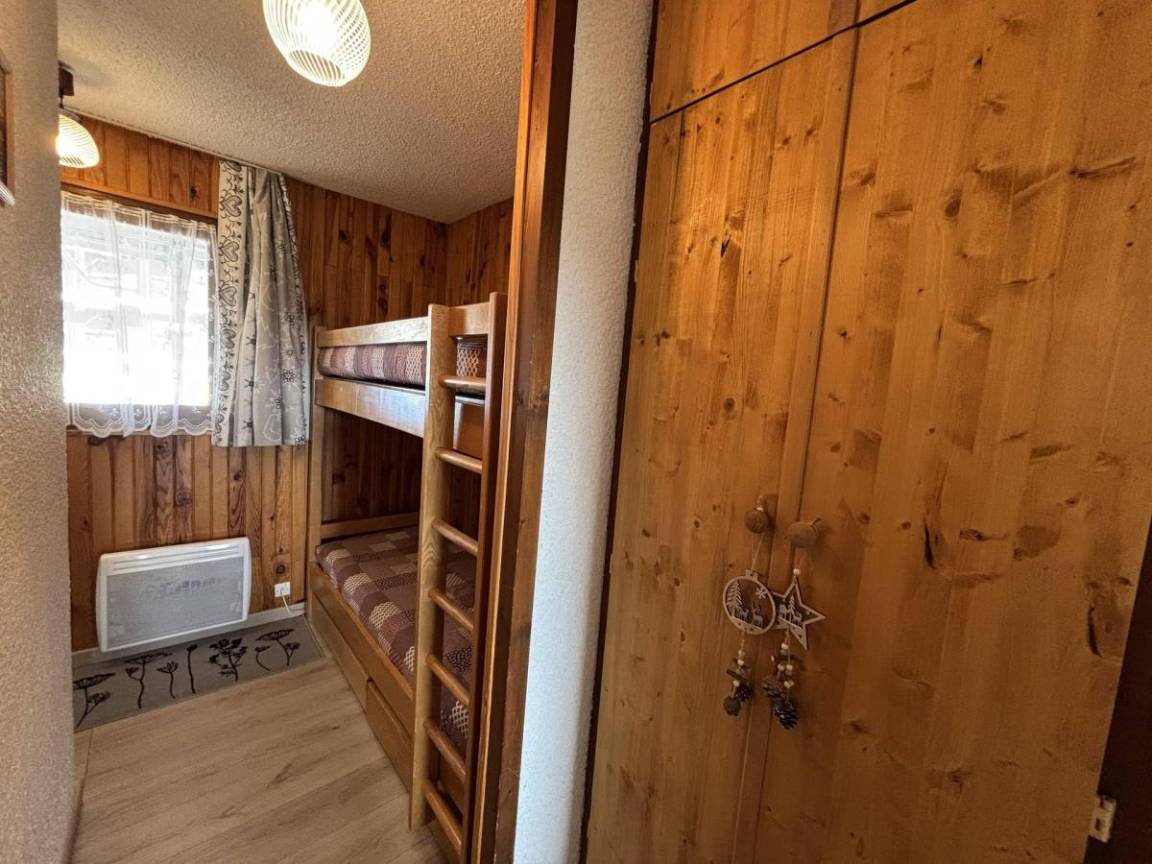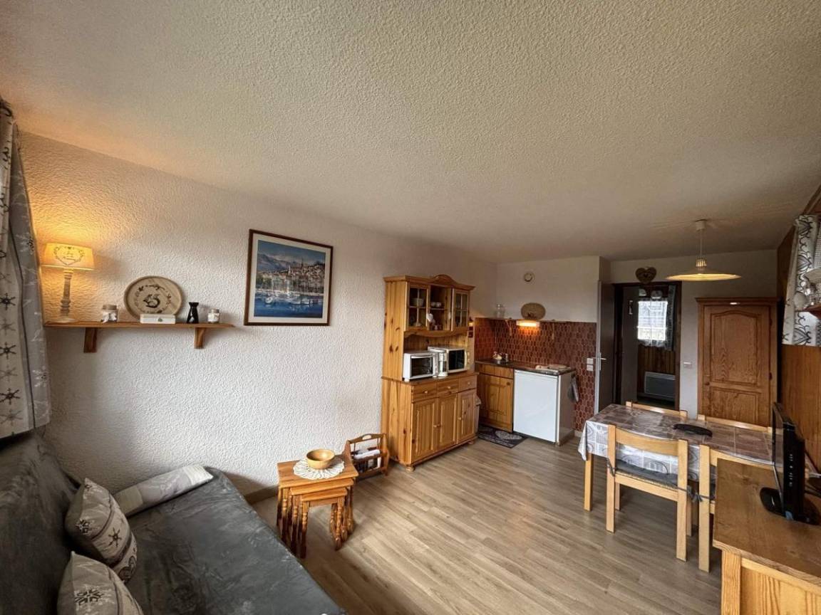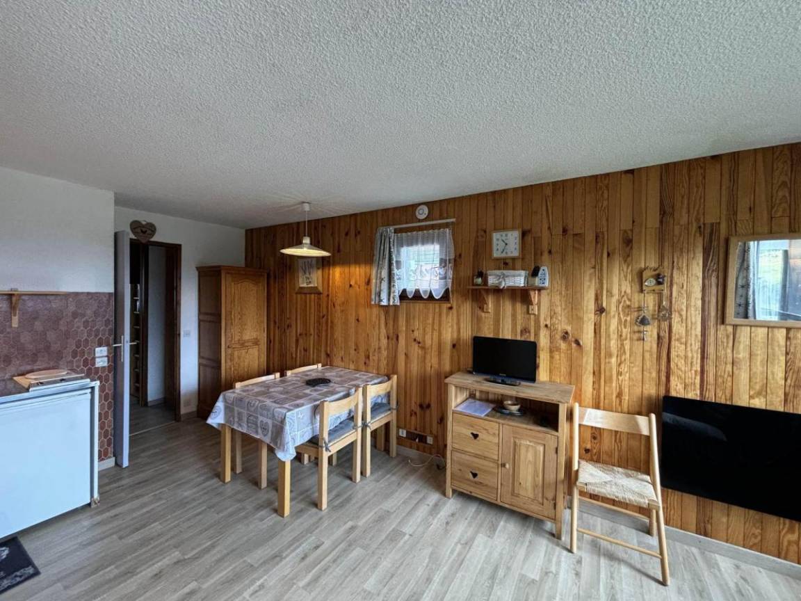Die Residenz Le Village 4 befindet sich im Herzen des Ferienortes Saisies. Die Residenz liegt am Chemin Cristal, 200 Meter von den Geschäften entfernt. Fläche von ungefähr 26 m². 1te Etage. Orientierung : Süd. Blick skipisten und Berg (Massif du Beaufortain). Wohnzimmer mit Klappschlafcouch. offener Schlafbereich mit 2 Stockbetten. Kochnische mit Kaffeemaschine, Toaster, Mikrowellenherd, kleiner Backofen, Herdplatten, Kühlschrank. Waschräume mit Dusche, WC. Balkon. Die oberen Betten sind nicht für Kinder unter 6 Jahren geeignet.