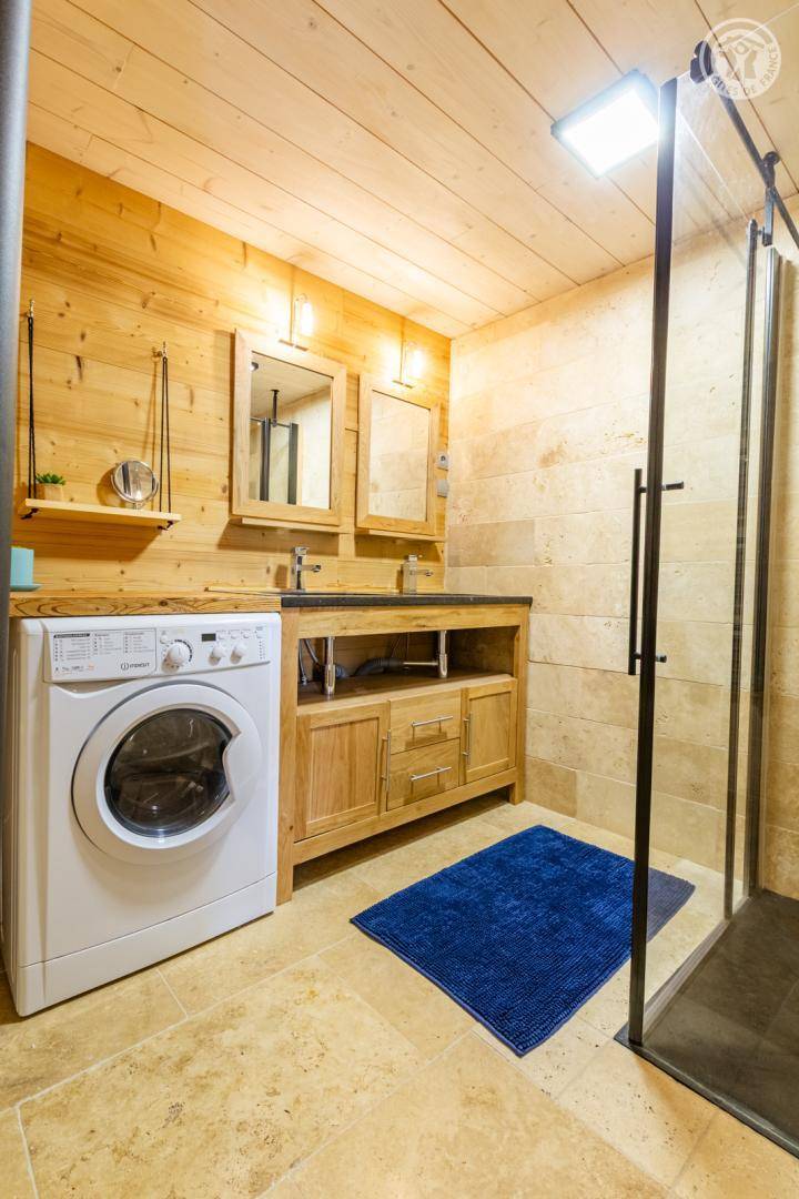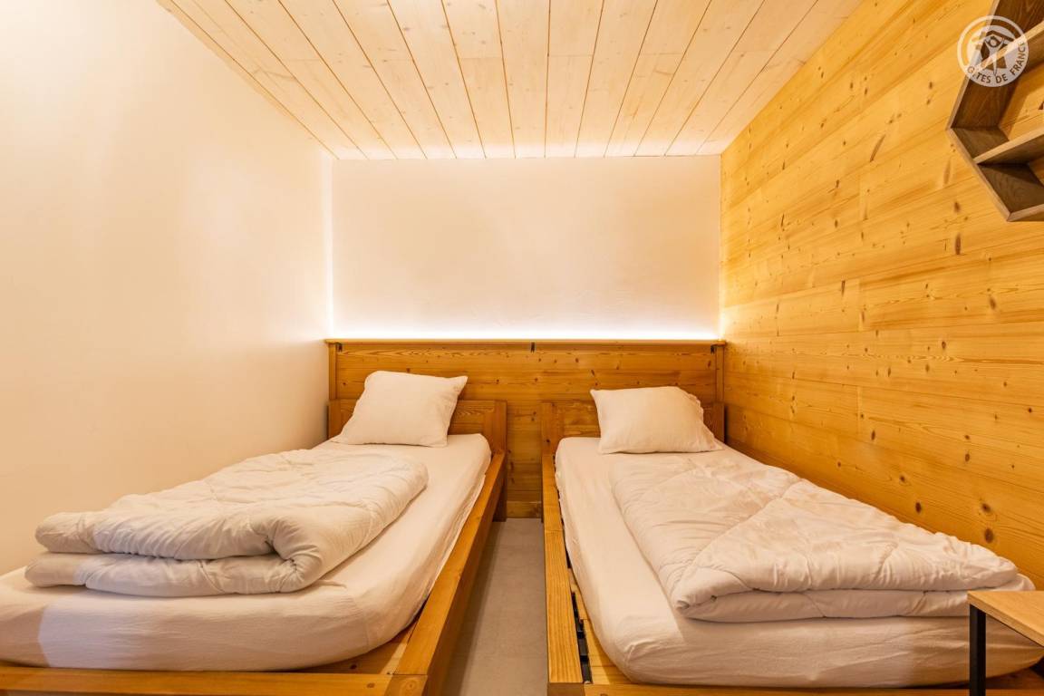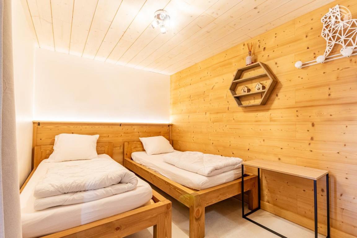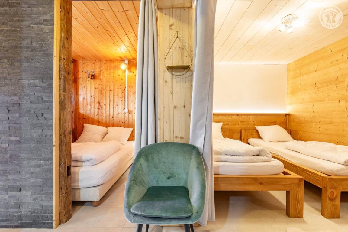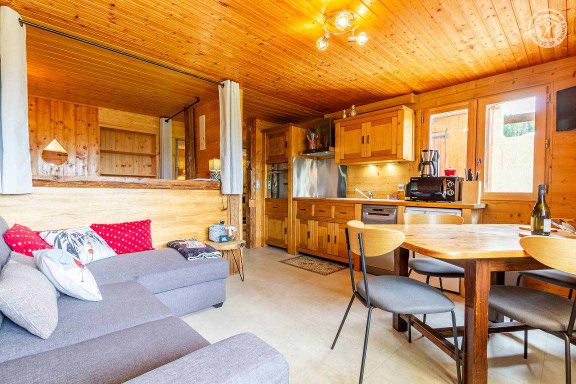 1 Gîte + 3 Unterkünfte im Chalet. Zugang zum Chalet vom privaten Parkplatz der Unterkunft. Wohnzimmer mit einem Bett im Wohnzimmer, abgetrennt durch eine halbe Wand und einen Vorhang: 1 Bett (140x190). Ein weiteres Schlafzimmer, abgetrennt durch einen Vorhang, mit 2 Einzelbetten (90x190). Ein Badezimmer mit Dusche und Doppelwaschbecken. Separates WC. Zugang zur privaten Terrasse. Bettwäsche, Handtücher und Reinigung optional. Skigebiet Les Saisies / Espace Diamant 500 m, Langlaufloipen 800 m.