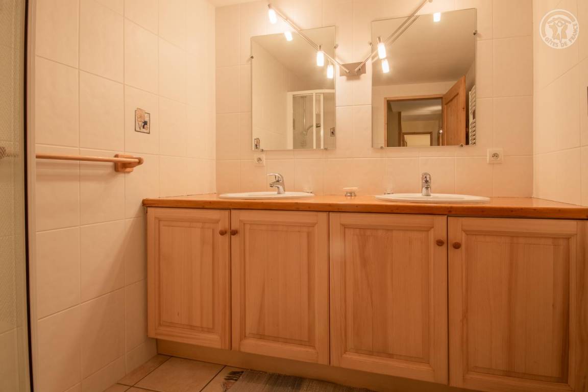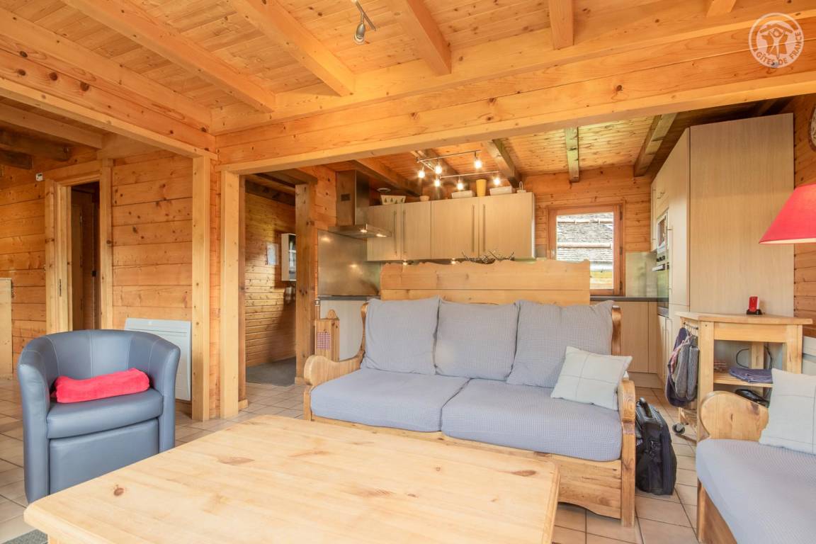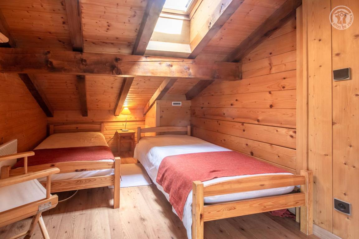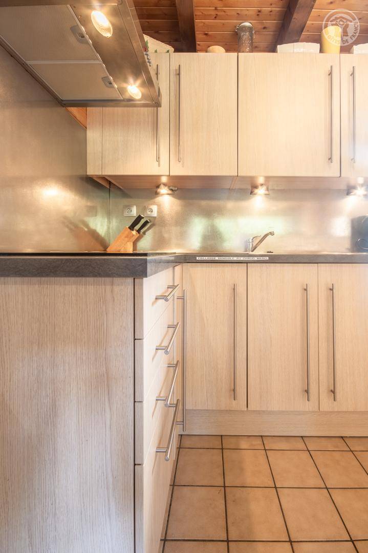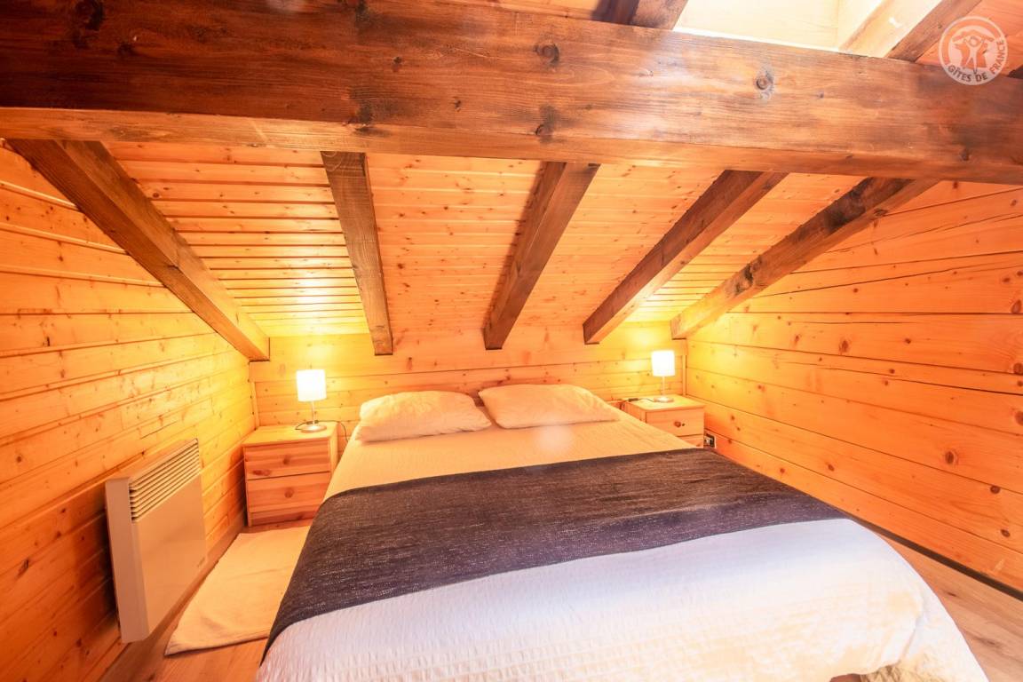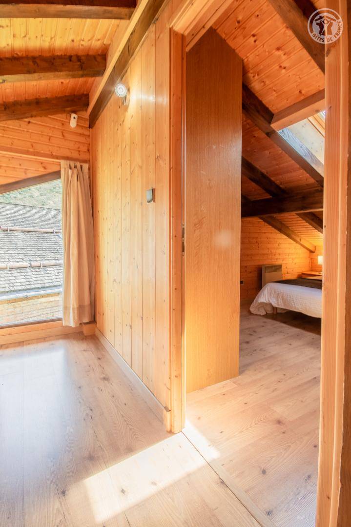 Individuelles Chalet. Im Erdgeschoss: Wohnzimmer - Wohnzimmer - Küche mit Zugang zu einem Balkon mit Terrasse, WC, Garage für Fahrräder und Motorräder. Obergeschoss minus 1: Badezimmer (Dusche), WC, 2 Schlafzimmer (1 Doppelbett 160x190cm / 1 Doppelbett 160x190cm), Waschküche. Im 1. Stock: 2 Schlafzimmer unter der Schräge (1 Doppelbett 160x190 cm / 1 Doppelbett 160x190 cm und 2 Einzelbetten 90x190 cm), Badezimmer (Badewanne) unter der Schräge. Privates, nicht eingezäuntes Grundstück.