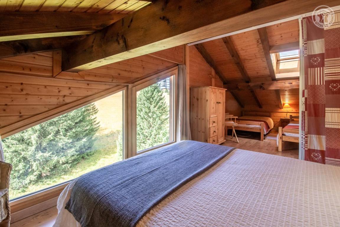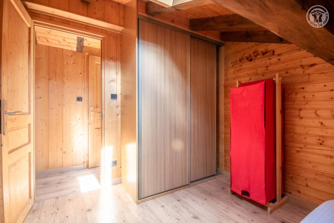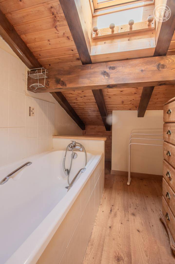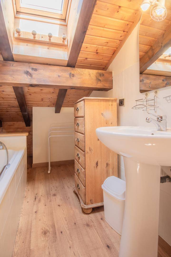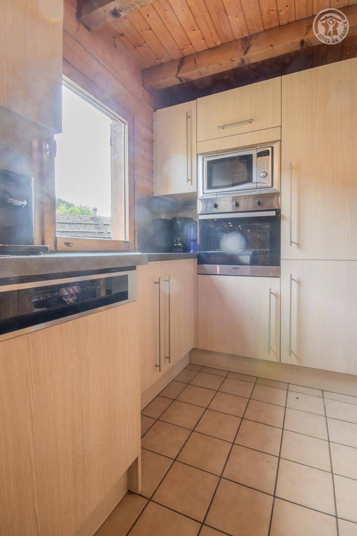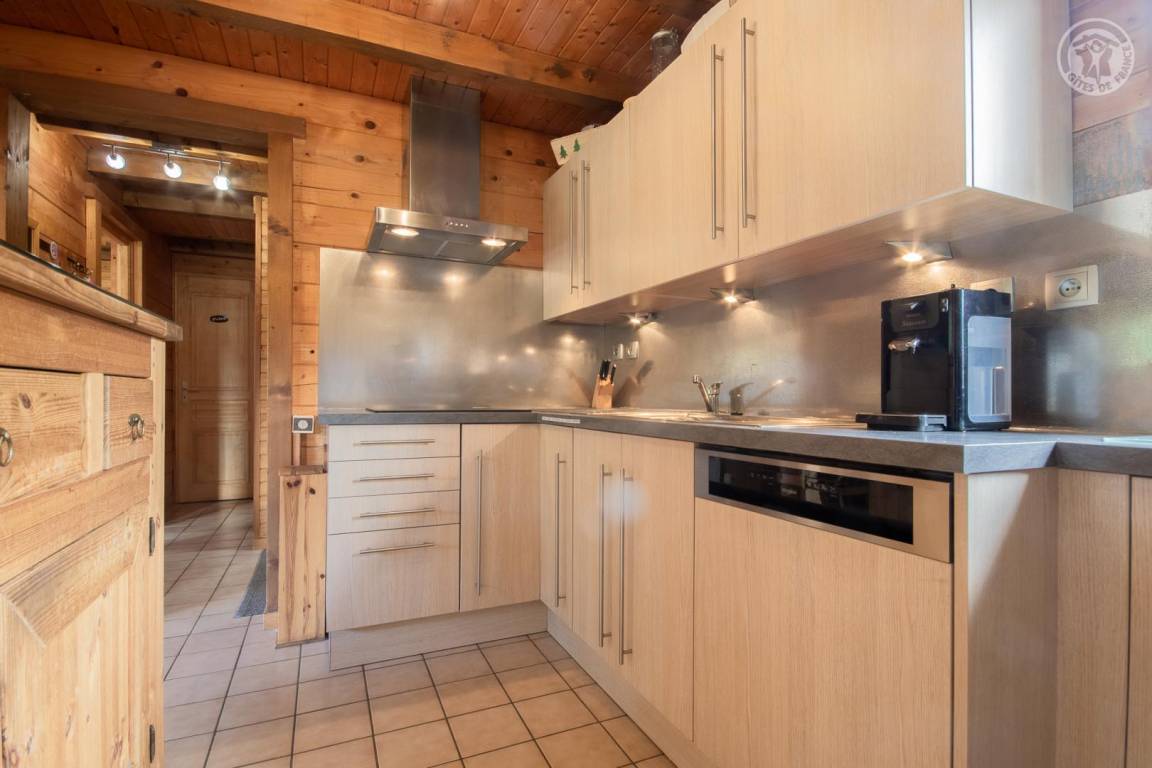 Individuelles Chalet. Im Erdgeschoss: Wohnzimmer - Wohnzimmer - Küche mit Zugang zu einem Balkon mit Terrasse, WC, Garage für Fahrräder und Motorräder. Obergeschoss minus 1: Badezimmer (Dusche), WC, 2 Schlafzimmer (1 Doppelbett 160x190cm / 1 Doppelbett 160x190cm), Waschküche. Im 1. Stock: 2 Schlafzimmer unter der Schräge (1 Doppelbett 160x190 cm / 1 Doppelbett 160x190 cm und 2 Einzelbetten 90x190 cm), Badezimmer (Badewanne) unter der Schräge. Privates, nicht eingezäuntes Grundstück.