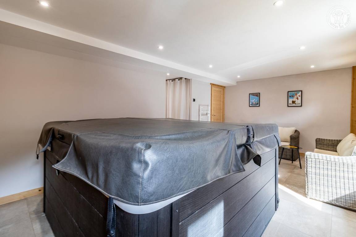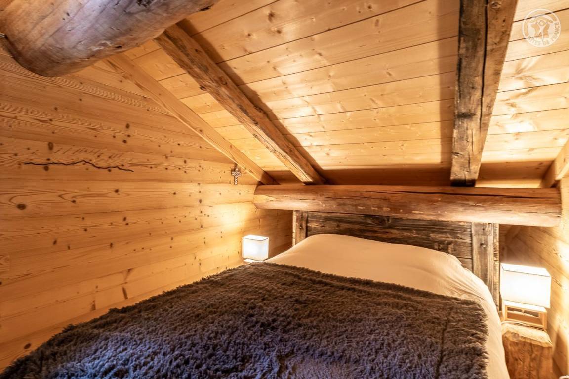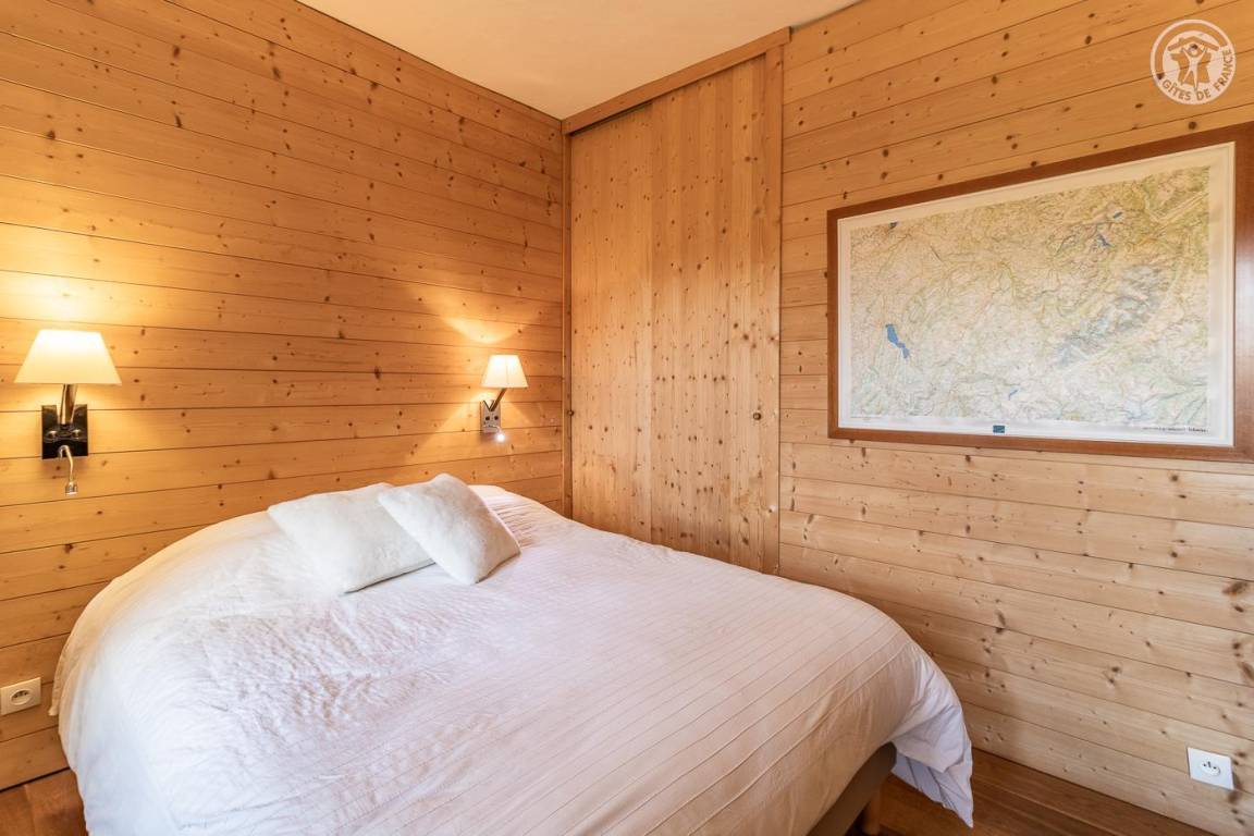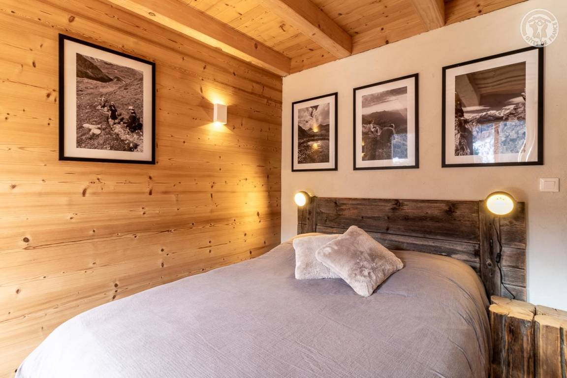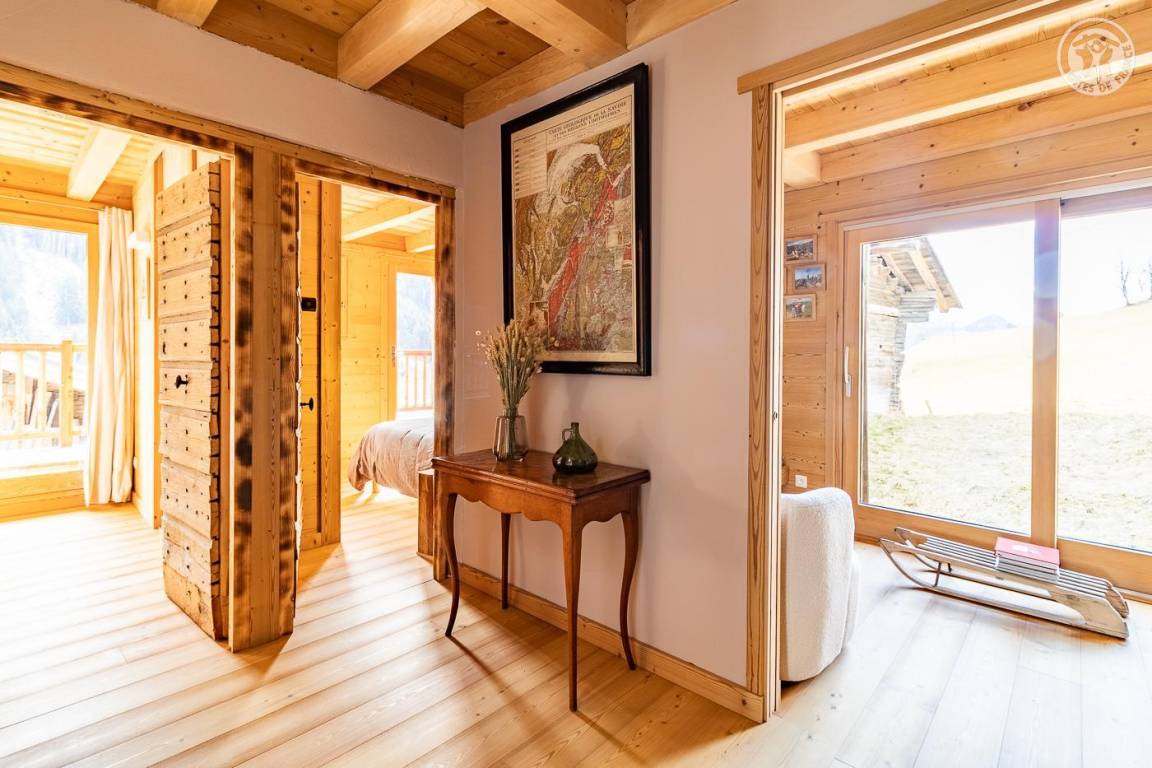 Individuelles Chalet auf 3 Etagen am Hang (Zufahrt über eine 300 m lange Straße). Erdgeschoss: Eingang (Skiraum), Wellnessraum mit SPA, Ruhelounge und Waschmaschine, Badezimmer (Dusche), separates WC. Im 1. Stock: Küche (Zugang über 2 Stufen vom Esszimmer), Badezimmer (Badewanne), separates WC, 1 Schlafzimmer (1 Doppelbett 140 x 190 cm mit Zugang nach außen), Ruhebereich mit TV und Bibliothek, 2 Schlafzimmer (1 Doppelbett 140 x 190 cm) mit Zugang zu einem Balkon, ein Badezimmer (Dusche), separates WC. Im 2. Stock: 1 Kinderzimmer (2 Einzelbetten 90 x 190 cm) mit Zugang zum Balkon, ein Ruheraum mit TV neben dem Schlafzimmer, ein Badezimmer (Dusche), separates WC, 1 „Refugium"-Schlafzimmer mit großen Dachgeschossbereichen ( 2 Einzelbetten 90 x 190 cm, die kombinierbar sind) und 1 Schlafzimmer (1 Doppelbett 140 x 190 cm). Eine Terrasse vor dem Chalet und eine weitere an der Seite (Zugang vom 1. Stock oder über eine Außentreppe). Privater Parkplatz.