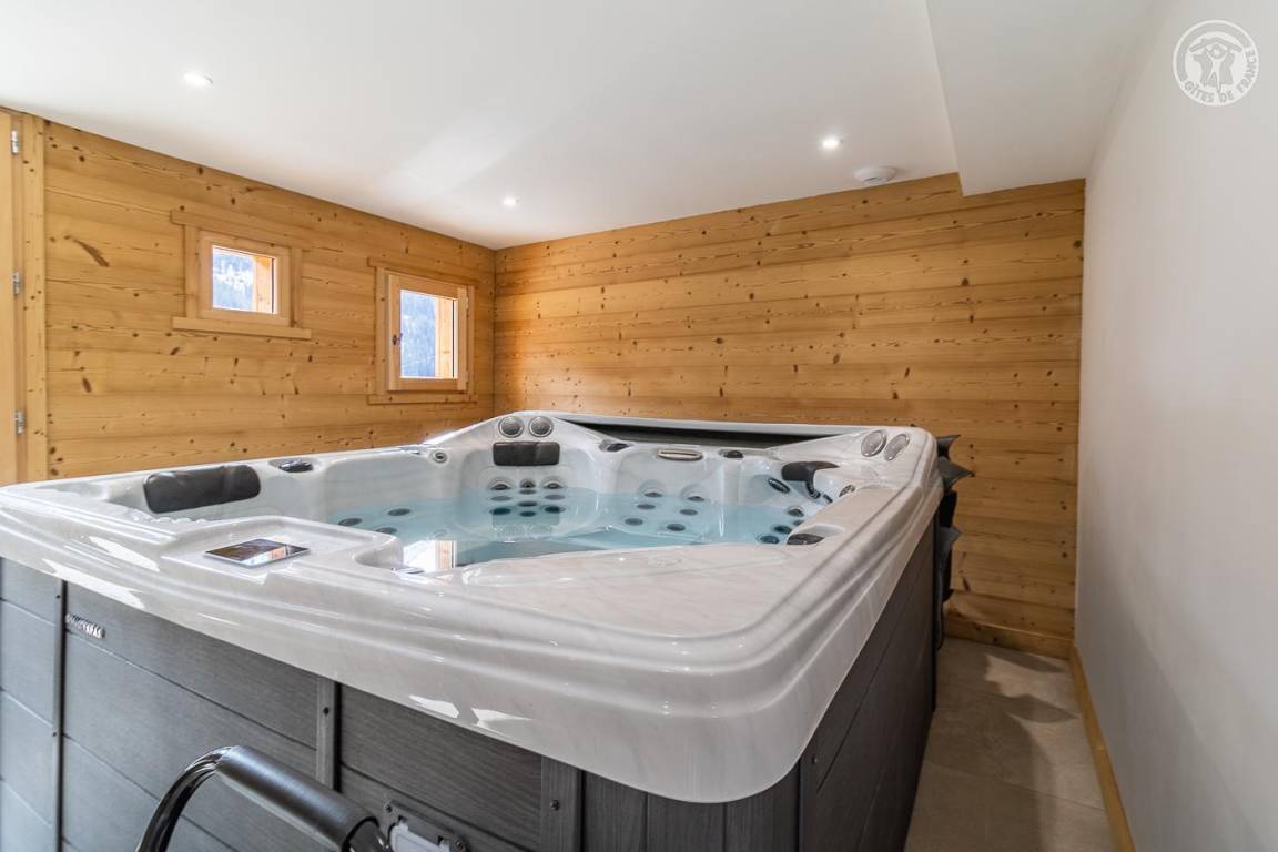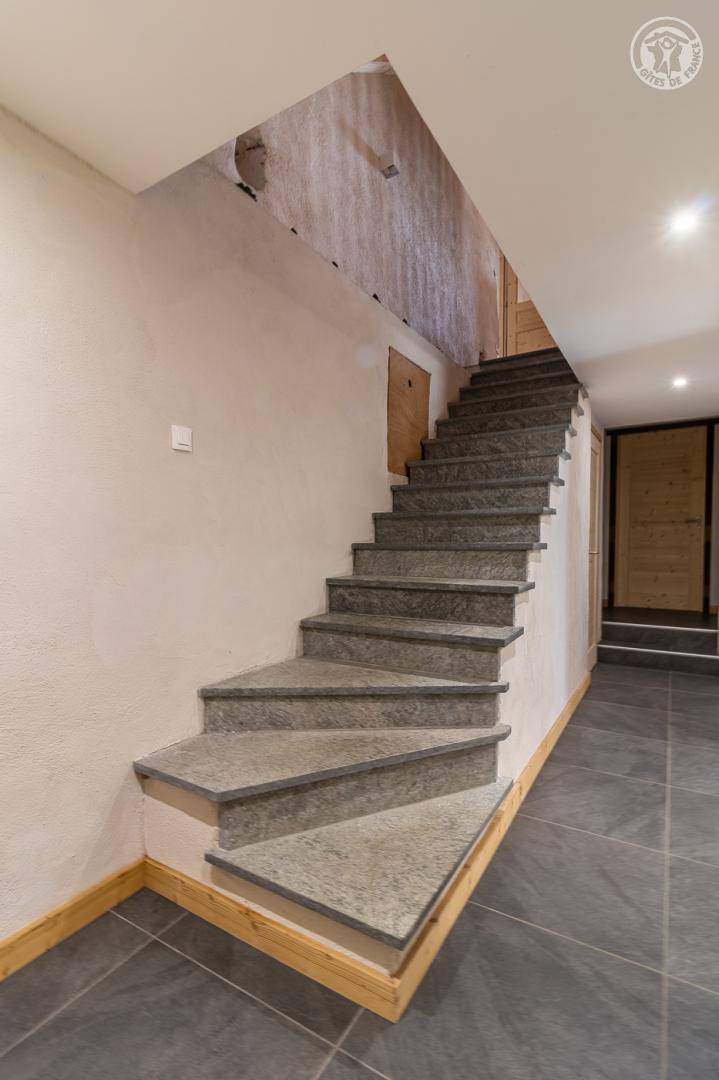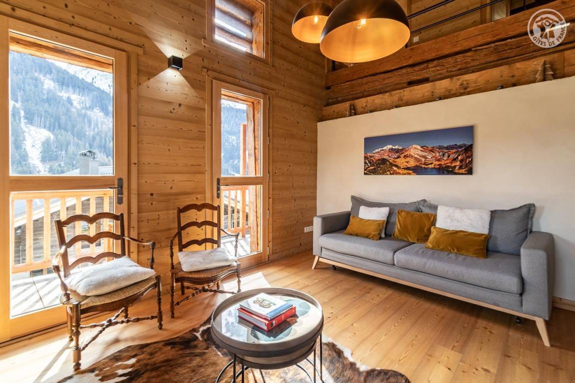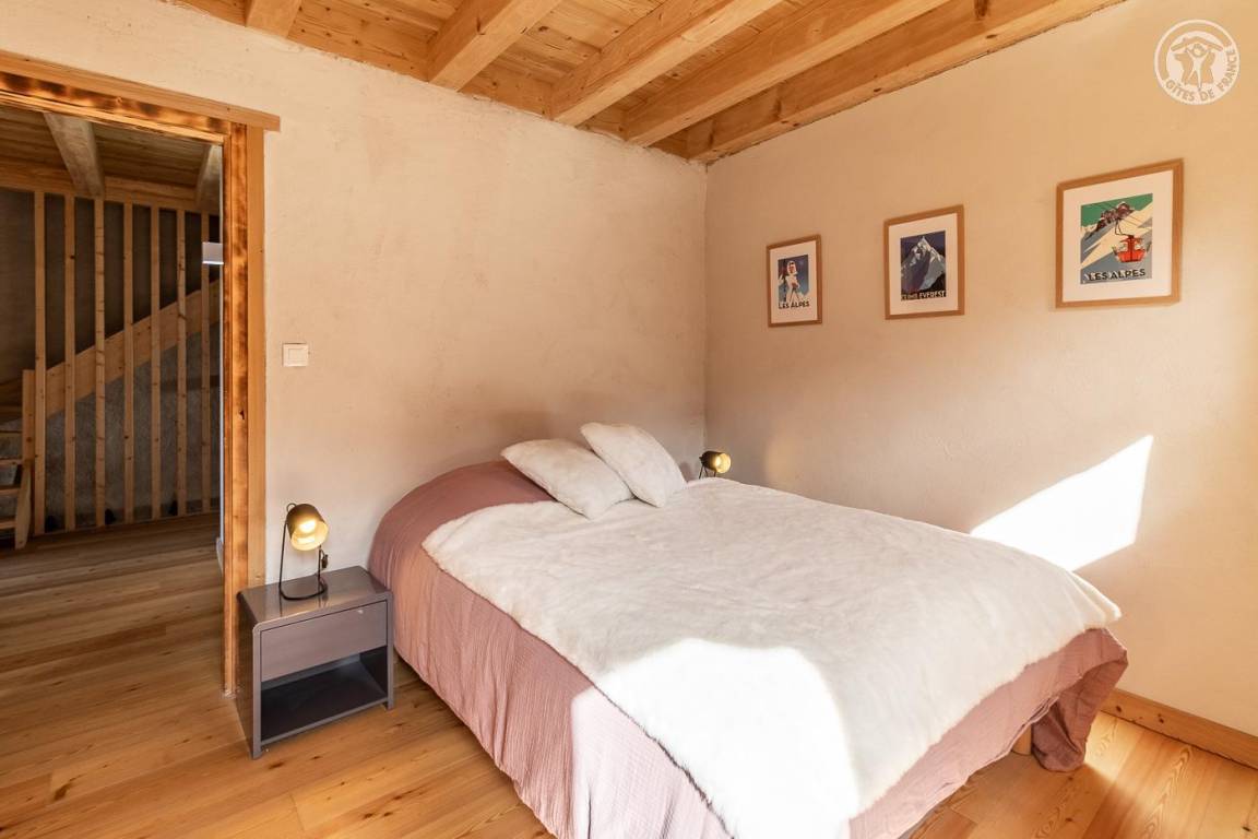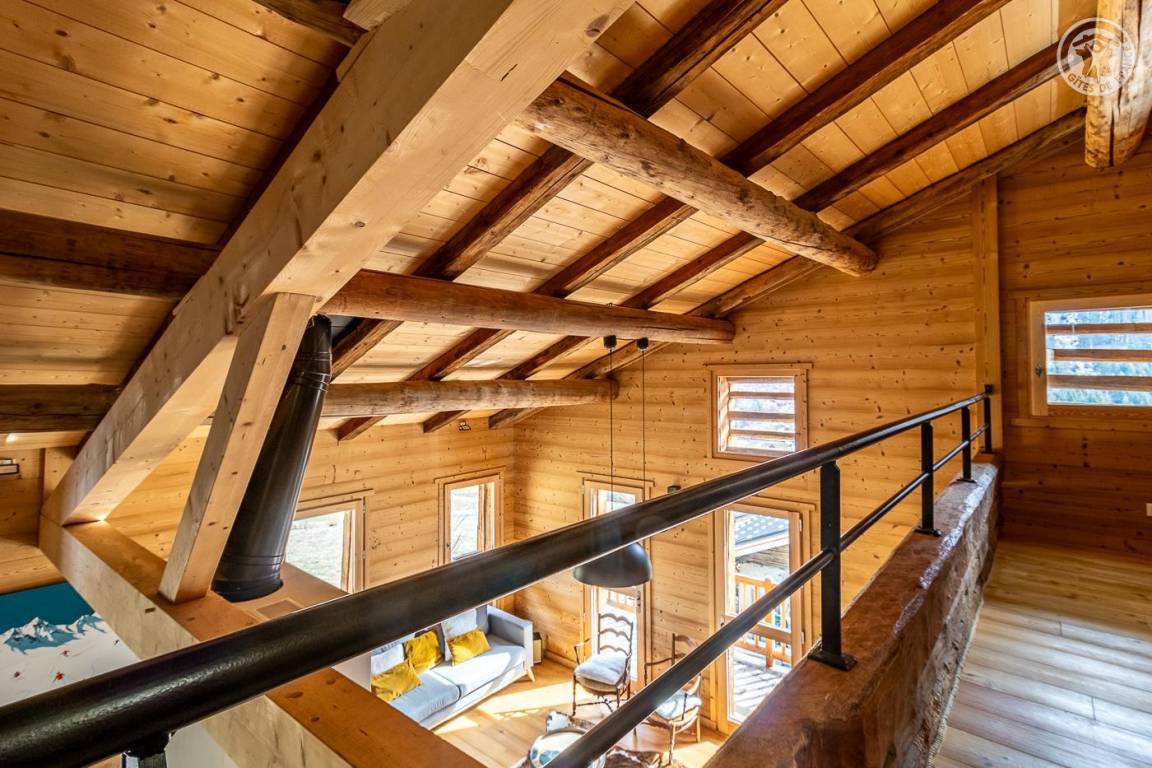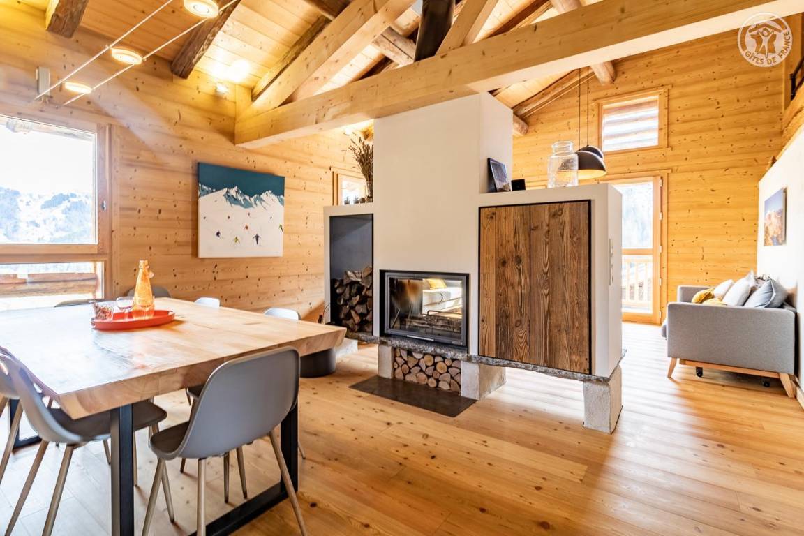 Individuelles Chalet auf 3 Etagen am Hang (Zufahrt über eine 300 m lange Straße). Erdgeschoss: Eingang (Skiraum), Wellnessraum mit SPA, Ruhelounge und Waschmaschine, Badezimmer (Dusche), separates WC. Im 1. Stock: Küche (Zugang über 2 Stufen vom Esszimmer), Badezimmer (Badewanne), separates WC, 1 Schlafzimmer (1 Doppelbett 140 x 190 cm mit Zugang nach außen), Ruhebereich mit TV und Bibliothek, 2 Schlafzimmer (1 Doppelbett 140 x 190 cm) mit Zugang zu einem Balkon, ein Badezimmer (Dusche), separates WC. Im 2. Stock: 1 Kinderzimmer (2 Einzelbetten 90 x 190 cm) mit Zugang zum Balkon, ein Ruheraum mit TV neben dem Schlafzimmer, ein Badezimmer (Dusche), separates WC, 1 „Refugium"-Schlafzimmer mit großen Dachgeschossbereichen ( 2 Einzelbetten 90 x 190 cm, die kombinierbar sind) und 1 Schlafzimmer (1 Doppelbett 140 x 190 cm). Eine Terrasse vor dem Chalet und eine weitere an der Seite (Zugang vom 1. Stock oder über eine Außentreppe). Privater Parkplatz.