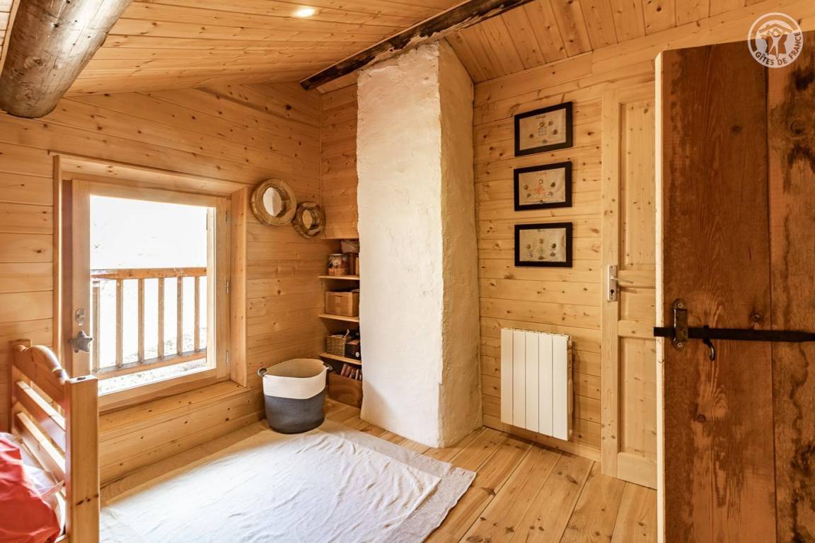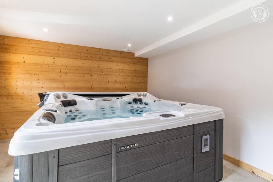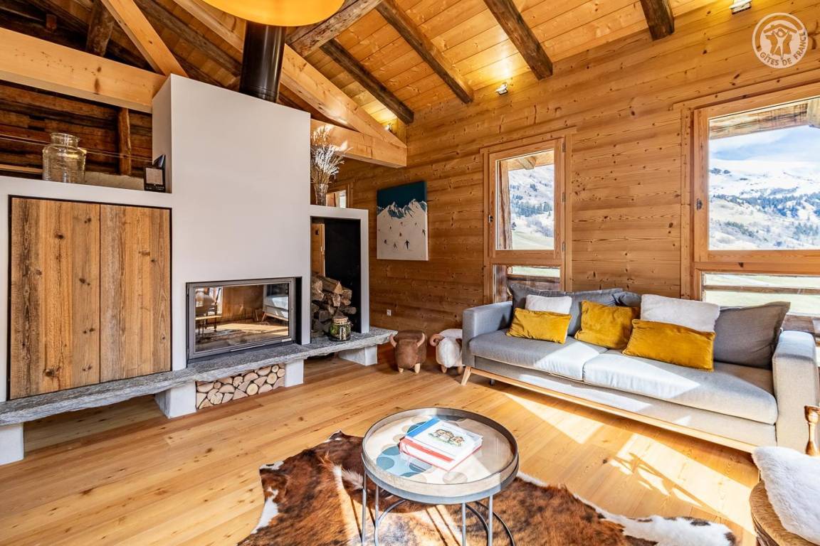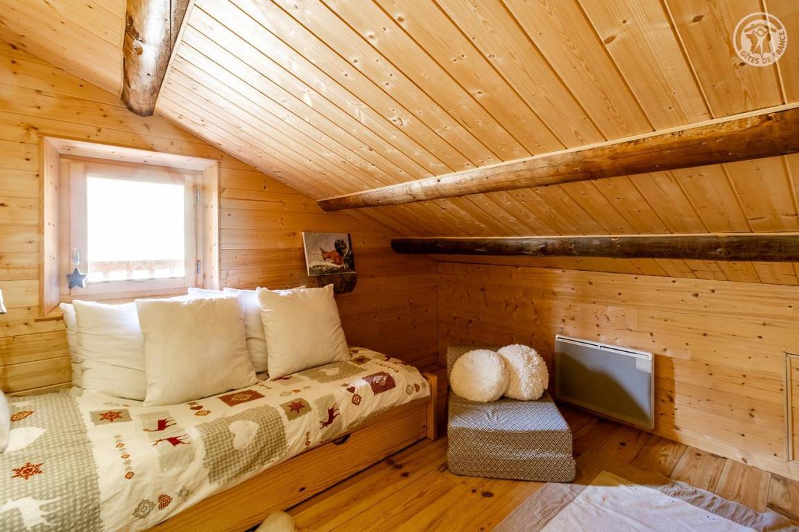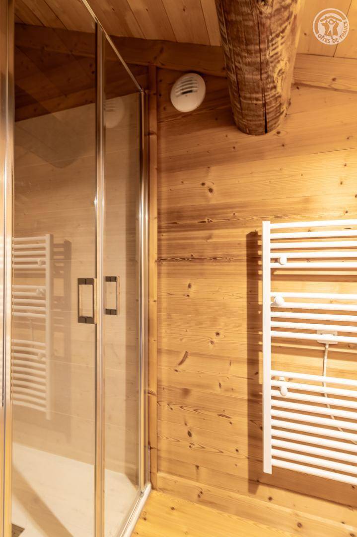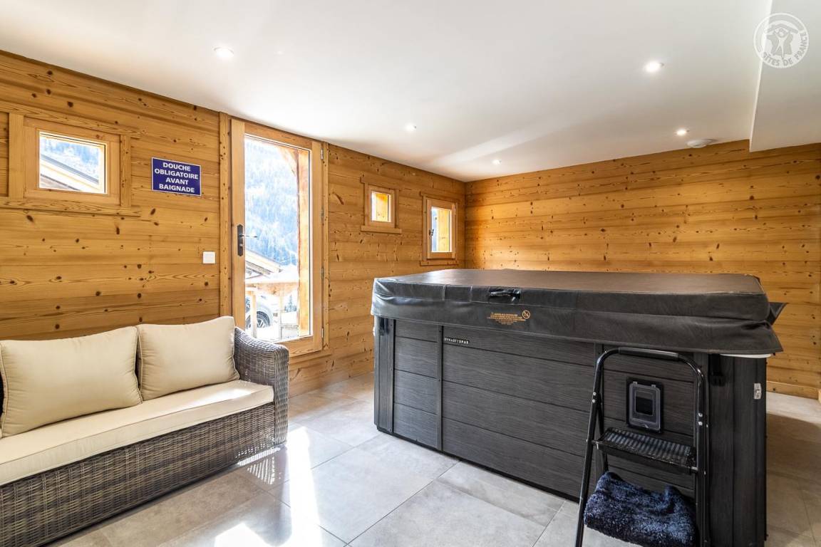 Individuelles Chalet auf 3 Etagen am Hang (Zufahrt über eine 300 m lange Straße). Erdgeschoss: Eingang (Skiraum), Wellnessraum mit SPA, Ruhelounge und Waschmaschine, Badezimmer (Dusche), separates WC. Im 1. Stock: Küche (Zugang über 2 Stufen vom Esszimmer), Badezimmer (Badewanne), separates WC, 1 Schlafzimmer (1 Doppelbett 140 x 190 cm mit Zugang nach außen), Ruhebereich mit TV und Bibliothek, 2 Schlafzimmer (1 Doppelbett 140 x 190 cm) mit Zugang zu einem Balkon, ein Badezimmer (Dusche), separates WC. Im 2. Stock: 1 Kinderzimmer (2 Einzelbetten 90 x 190 cm) mit Zugang zum Balkon, ein Ruheraum mit TV neben dem Schlafzimmer, ein Badezimmer (Dusche), separates WC, 1 „Refugium"-Schlafzimmer mit großen Dachgeschossbereichen ( 2 Einzelbetten 90 x 190 cm, die kombinierbar sind) und 1 Schlafzimmer (1 Doppelbett 140 x 190 cm). Eine Terrasse vor dem Chalet und eine weitere an der Seite (Zugang vom 1. Stock oder über eine Außentreppe). Privater Parkplatz.