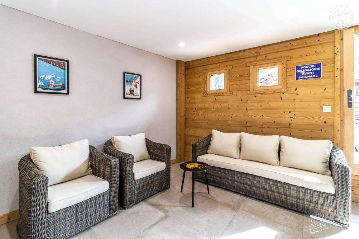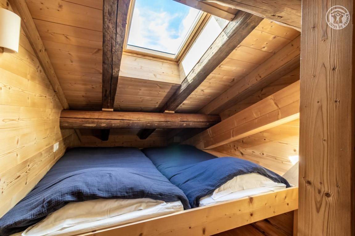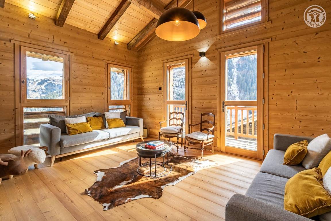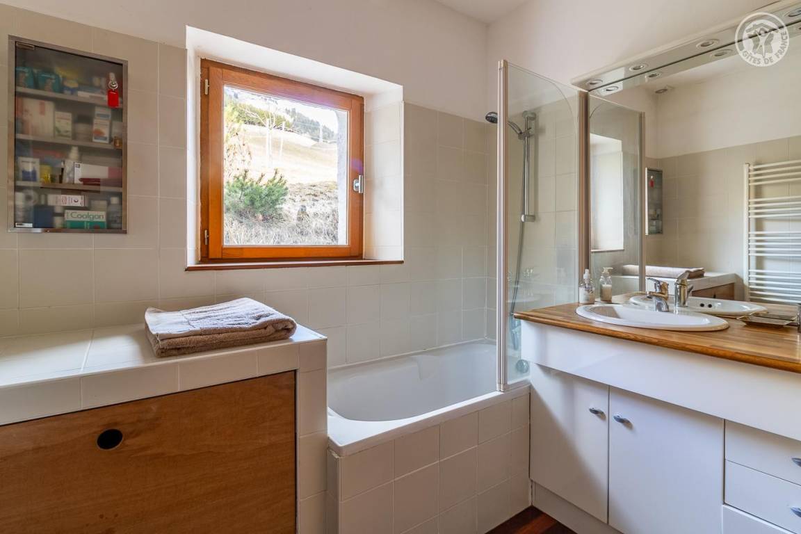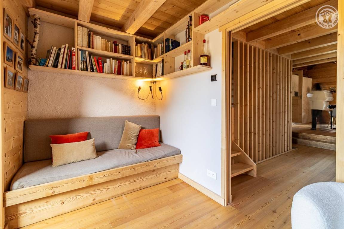 Individuelles Chalet auf 3 Etagen am Hang (Zufahrt über eine 300 m lange Straße). Erdgeschoss: Eingang (Skiraum), Wellnessraum mit SPA, Ruhelounge und Waschmaschine, Badezimmer (Dusche), separates WC. Im 1. Stock: Küche (Zugang über 2 Stufen vom Esszimmer), Badezimmer (Badewanne), separates WC, 1 Schlafzimmer (1 Doppelbett 140 x 190 cm mit Zugang nach außen), Ruhebereich mit TV und Bibliothek, 2 Schlafzimmer (1 Doppelbett 140 x 190 cm) mit Zugang zu einem Balkon, ein Badezimmer (Dusche), separates WC. Im 2. Stock: 1 Kinderzimmer (2 Einzelbetten 90 x 190 cm) mit Zugang zum Balkon, ein Ruheraum mit TV neben dem Schlafzimmer, ein Badezimmer (Dusche), separates WC, 1 „Refugium"-Schlafzimmer mit großen Dachgeschossbereichen ( 2 Einzelbetten 90 x 190 cm, die kombinierbar sind) und 1 Schlafzimmer (1 Doppelbett 140 x 190 cm). Eine Terrasse vor dem Chalet und eine weitere an der Seite (Zugang vom 1. Stock oder über eine Außentreppe). Privater Parkplatz.