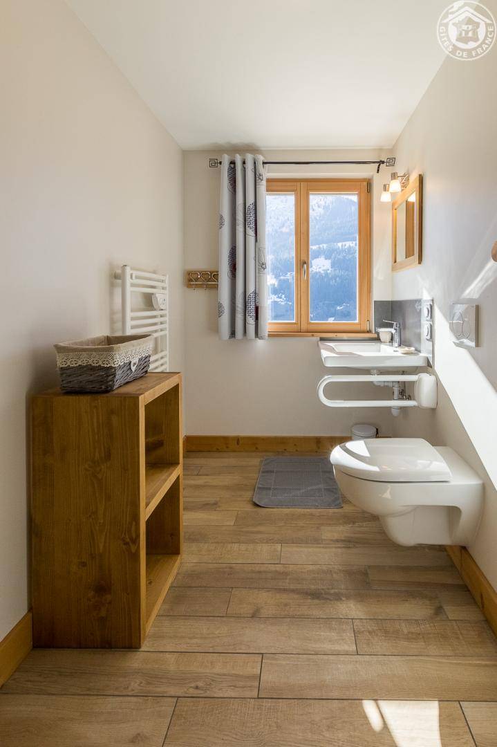 Einfamilienhaus mit Zugang für Personen mit eingeschränkter Mobilität (externe Rampen). Auf 2 Ebenen. Erdgeschoss: Küche, Wohnzimmer, iPhone/iPod-Dockingstation, 1 PMR-Schlafzimmer (1 Doppelbett 160 x 200 cm) und eigenes Badezimmer (Dusche und WC), 1 Schlafzimmer mit eigener Dusche (1 Doppelbett 160 x 200 cm), Separates WC mit Waschbecken. 1. Stock: 3 Schlafzimmer mit 2 Duschbädern (walk-in Duschen) und 1 eigenem Badezimmer (2 Doppelbetten 160 x 200 cm / 1 Doppelbett 160 x 200 cm, 2 Etagenbetten), separates WC. Balkon + Terrasse + Grundstück. Bettwäsche + Handtücher inklusive. Betten gemacht. Skifahren Hauteluce/les Saisies/Espace Diamant 1 km, Hauteluce-Val Joly/les Contamines 7 km. Langlaufen Les Saisies 8km. Kostenloser Shuttle nur im Winter 500 m. Flumet-See.