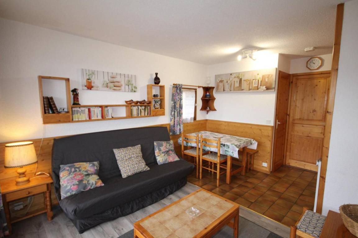 Chalet du Lac 3 ist ein kleines Chalet am Eingang zum Ferienort Les Saisies. Es bietet eine klare Aussicht. Das Dorfzentrum liegt 800 Meter von der Vermietung entfernt. Fläche von ungefähr 24 m². Erdgeschoss. Orientierung : Süd, West. Blick skipisten und Berg. Wohnzimmer mit BZ-Sofas (160). offener Schlafbereich mit 2 Stockbetten (120). Kochnische mit Mikrowellenherd, Herdplatten, Kühlschrank. Badezimmer mit Badewanne. separates WC. Terrasse. Die oberen Betten sind nicht für Kinder unter 6 Jahren geeignet.