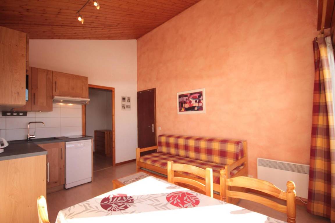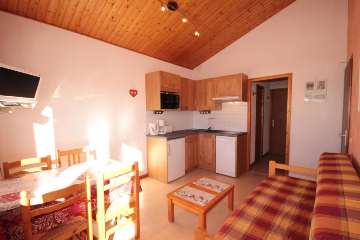 Die Residenz Le Village 5 liegt im Herzen des Ferienortes Les Saisies. Die Residenz liegt in der Moliettes-Straße, 200 m von den Geschäften entfernt. Fläche von ungefähr 26 m². 3te Etage. Orientierung : Süd. Blick berg (Massif du Beaufortain). Wohnzimmer mit Ausziehschlafcouch für 2 Personen. Schlafzimmer mit 2 Stockbetten. offener Schlafbereich mit Einzelbett. Kochnische mit Kaffeemaschine, Toaster, Geschirrspülmaschine, Mikrowellenherd, Herdplatten, Kühlschrank. Waschräume mit Dusche, WC. Balkon. Die oberen Betten sind nicht für Kinder unter 6 Jahren geeignet.