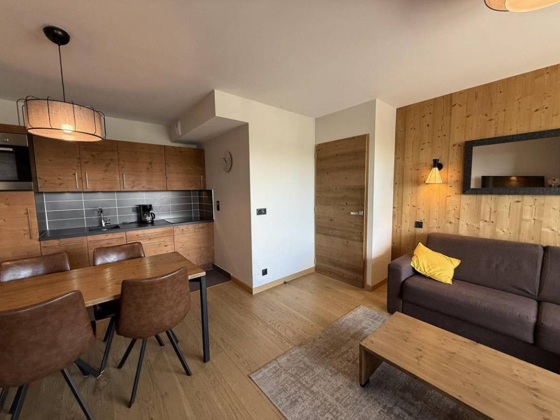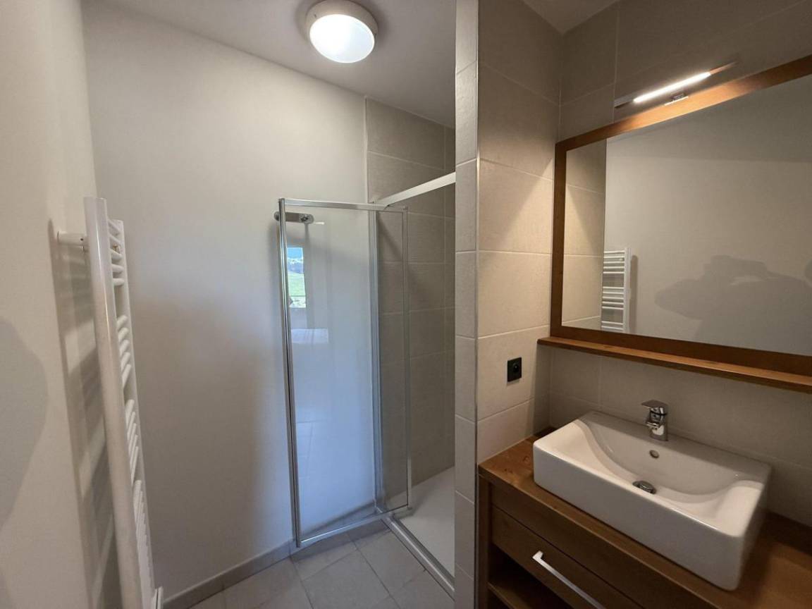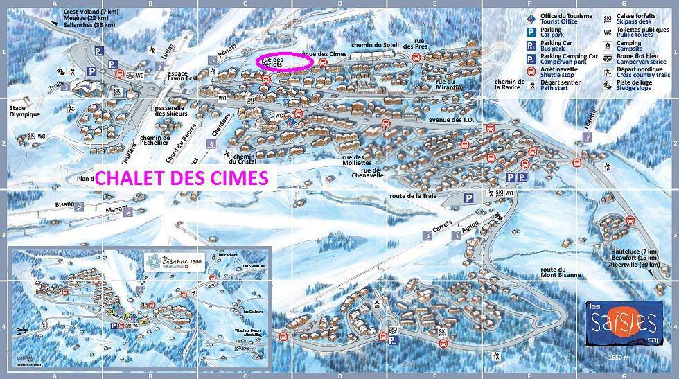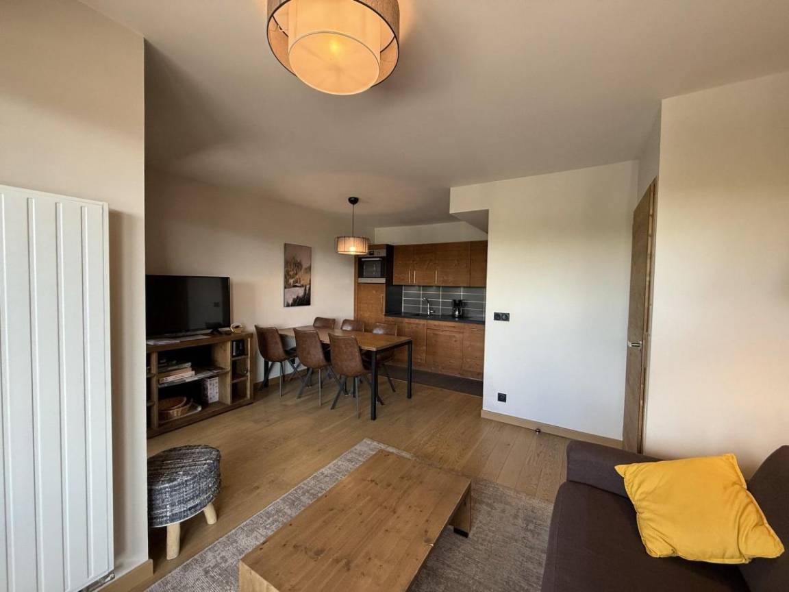 Die Residenz Les Chalets des Cimes befindet sich im Ferienort Les Saisies. Die ersten Geschäfte sind 250 m vom Gebäude entfernt. Die Residenz liegt zwischen der Periots-Straße und der Cimes-Straße. Fläche von ungefähr 52 m². 2te Etage. Orientierung : Süd. Blick panorama. Wohnzimmer mit Klappschlafcouch. 2 Schlafzimmer mit Doppelbett (160). Kochnische mit Wasserkocher, Kaffeemaschine, Backofen, Toaster, Dunstabzugshaube, Geschirrspülmaschine, 4 Glaskeramikkochfelder, Kühlschrank. 2 Waschräume mit Dusche. separates WC. Balkon.
