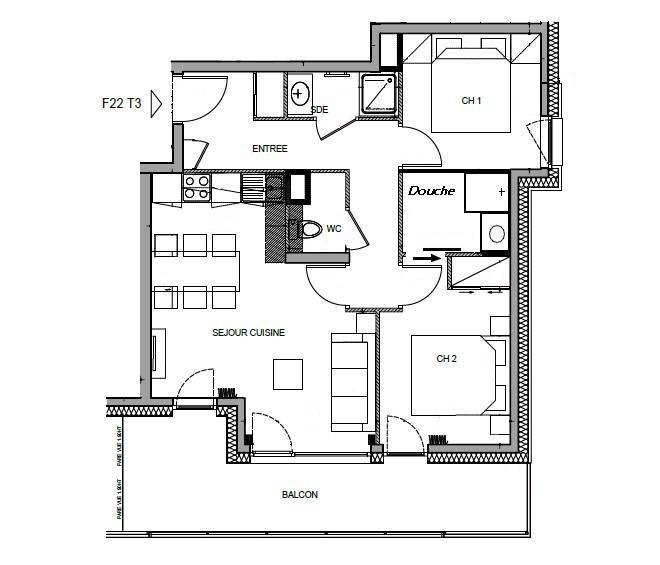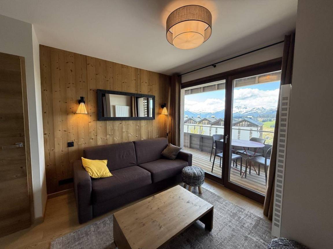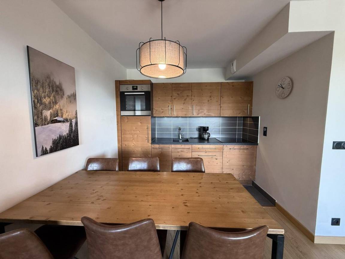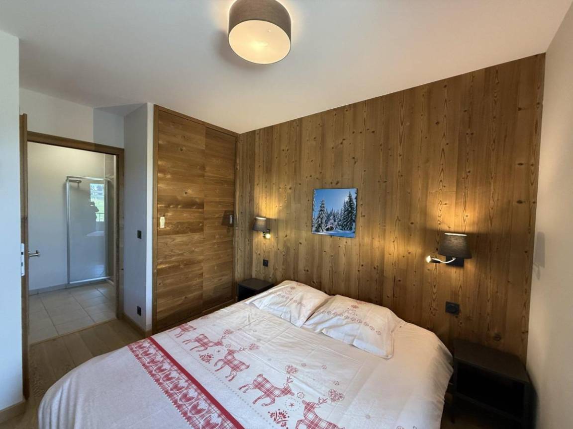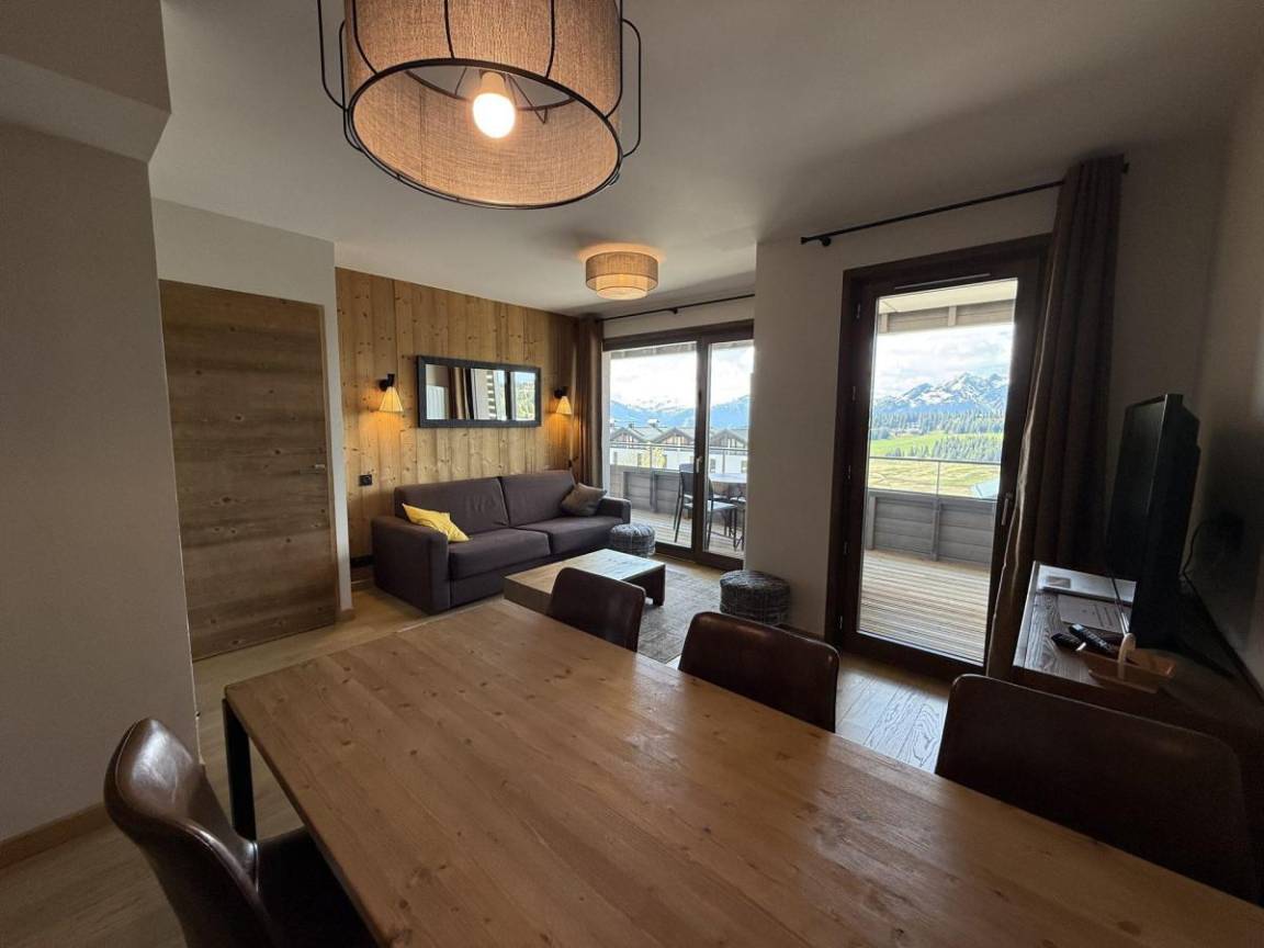 Die Residenz Les Chalets des Cimes befindet sich im Ferienort Les Saisies. Die ersten Geschäfte sind 250 m vom Gebäude entfernt. Die Residenz liegt zwischen der Periots-Straße und der Cimes-Straße. Fläche von ungefähr 52 m². 2te Etage. Orientierung : Süd. Blick panorama. Wohnzimmer mit Klappschlafcouch. 2 Schlafzimmer mit Doppelbett (160). Kochnische mit Wasserkocher, Kaffeemaschine, Backofen, Toaster, Dunstabzugshaube, Geschirrspülmaschine, 4 Glaskeramikkochfelder, Kühlschrank. 2 Waschräume mit Dusche. separates WC. Balkon.