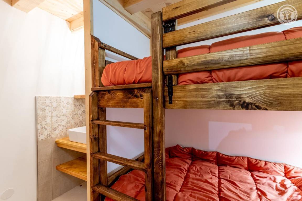 Gite auf 2 Ebenen, in einem Haus mit 2 weiteren Gites (auf Gartenebene). Unabhängiger Zugang von der Terrasse, bestehend aus einem Eingang, einem Wohn-/Esszimmer mit Küche, 2 Schlafzimmern (1 Doppelbett 160x200 cm / 1 Doppelbett 160x200 cm) und jeweils einem privaten Badezimmer (Dusche und WC), einem Schlafzimmer ohne Zugang nach draußen (2 Etagenbetten 90x190 cm) und Waschbecken, einem Badezimmer (Badewanne), separatem WC. Obergeschoss: Zwischengeschoss unter dem Dach mit Zwischenraum über dem Wohnzimmer (2 Einzelbetten 90x190 cm) und separatem WC. Gesamte Wohnfläche: 105 m² einschließlich Dachböden. Privater Außenbereich.