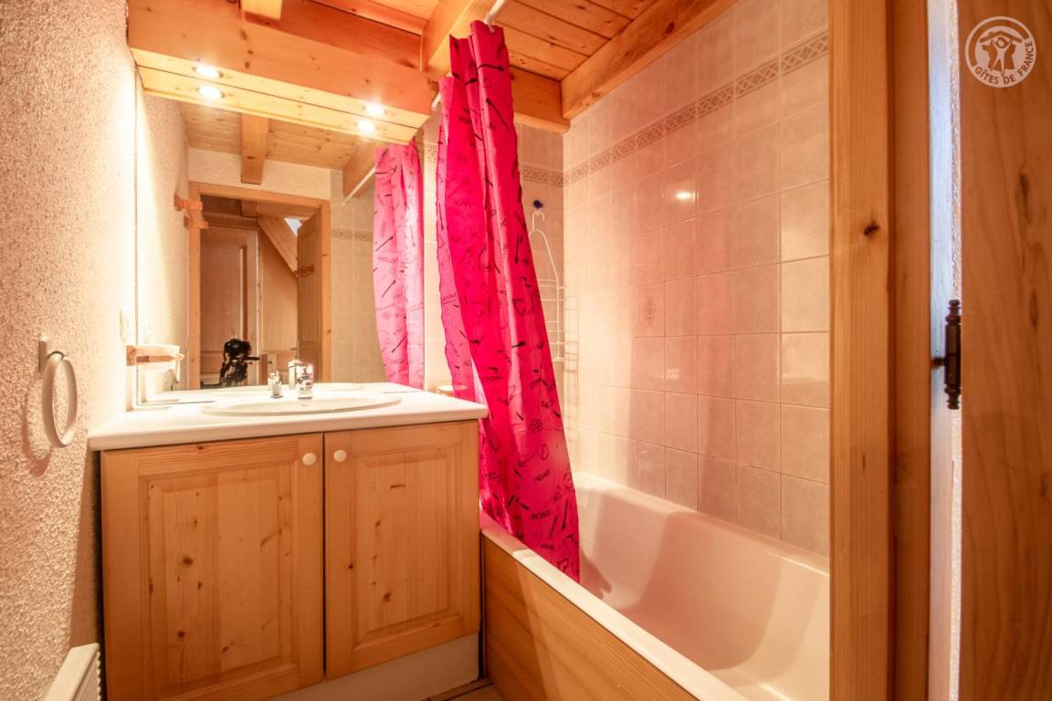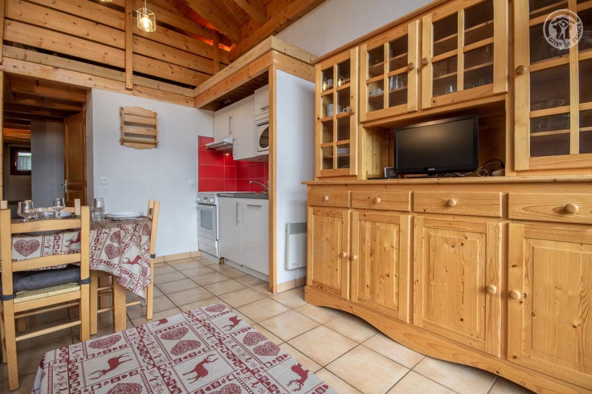 „Appartement bien équipé dans résidence très calme et proche de tout (commerces, pistes de skis, animations…). Manque de rangements dans les chambres. 1 chambre à l’étage et une en mezzanine avec mansardes trop basses.“