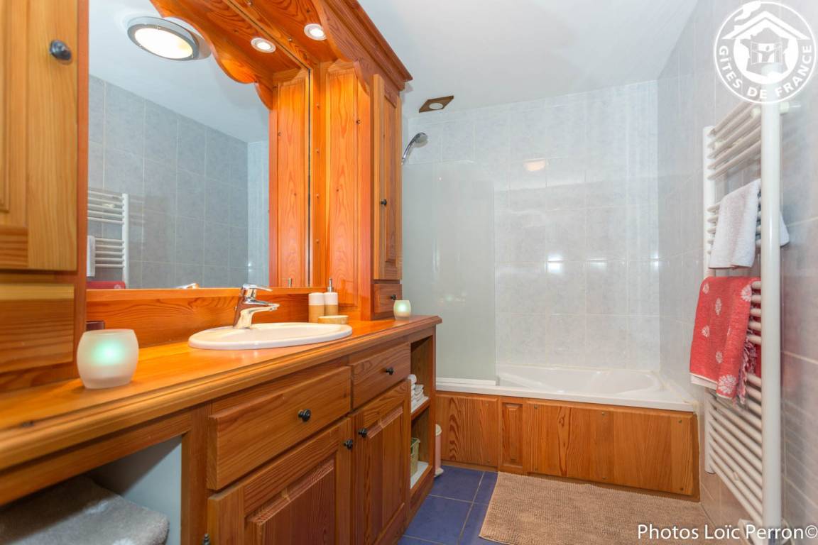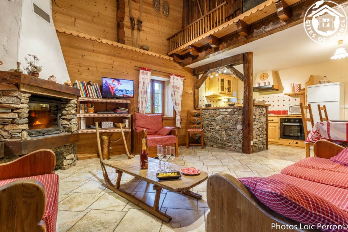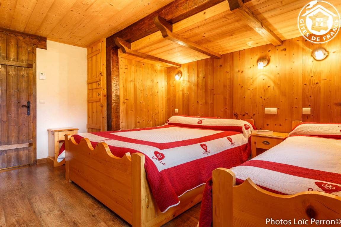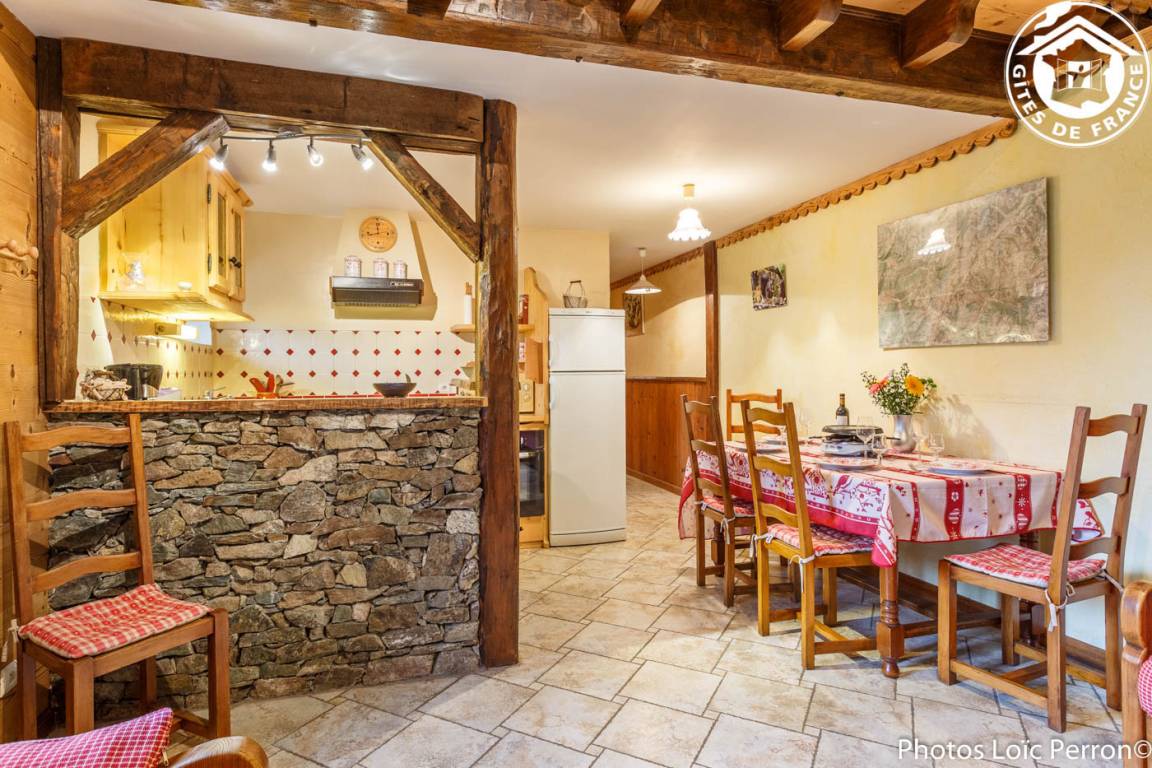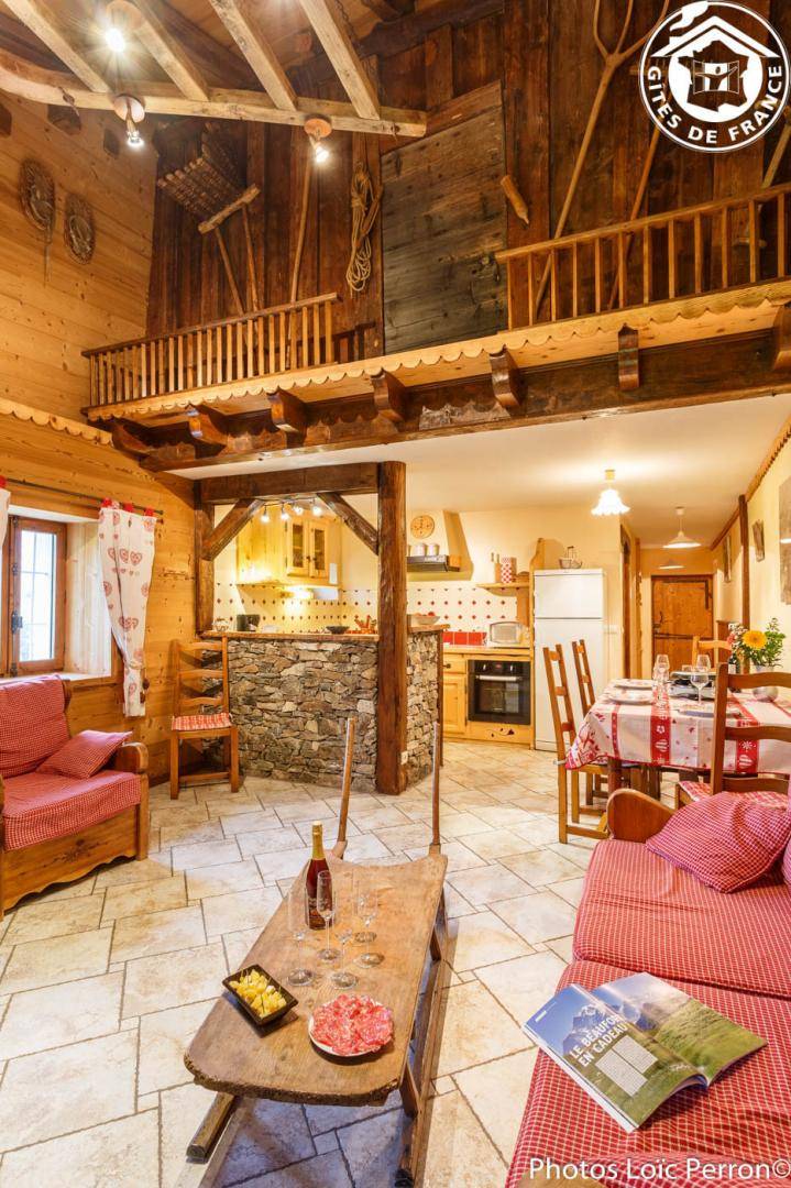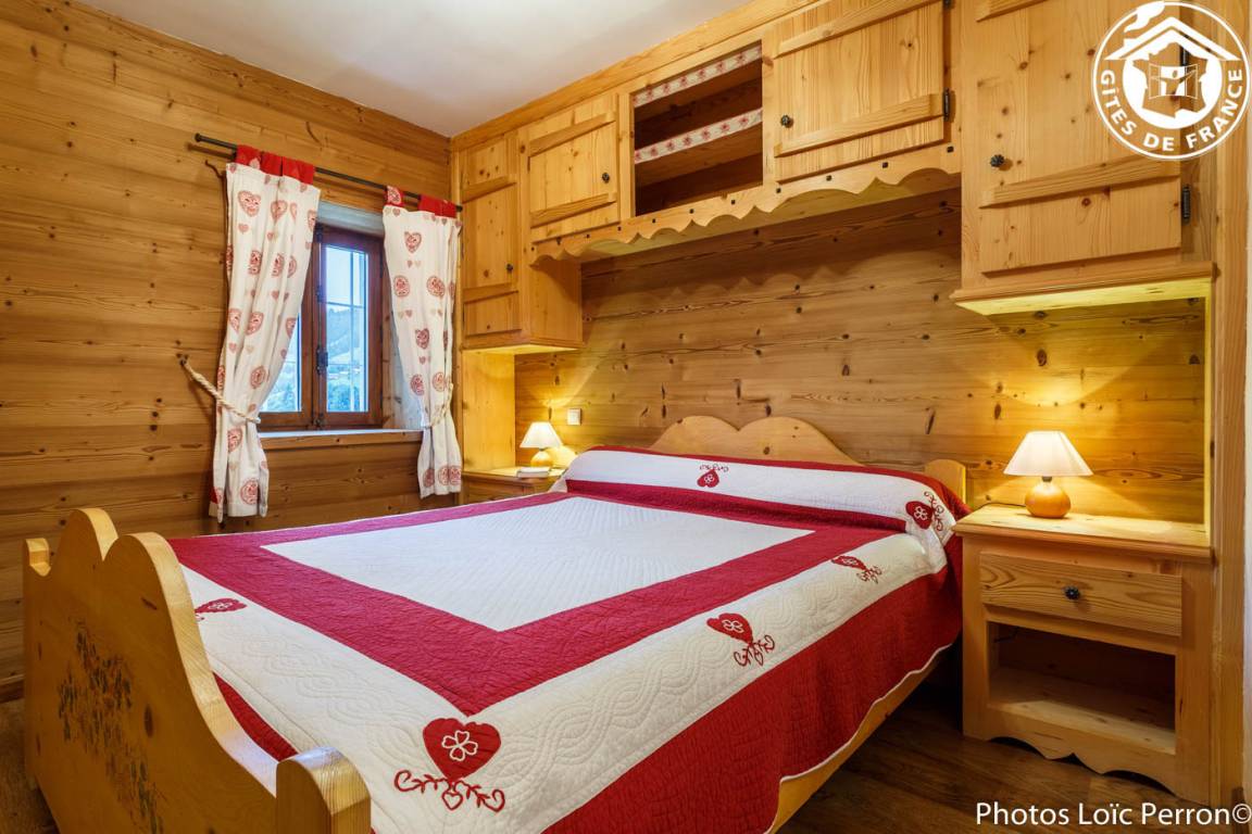 2 Gîtes im Chalet. 1. Stock: Wohnzimmer-Küche-Lounge, WLAN, 2 Schlafzimmer (1 Doppelbett 160 x 200 cm / 1 Doppelbett 160 x 200 cm + Einzelbett 90 x 200 cm), Badezimmer (Badewanne). Gemeinsame Waschmaschine + Wäschetrockner. Balkon. Privater Garten. Gemeinsamkeit. Garage (1 Pl.). Bettwäsche inklusive + gemachte Betten + Hauswäsche inklusive. Spa 6 Plätze gemeinsam für die beiden Hütten. Skiverbindung Les Saisies / Espace Diamant 2 km, Hauteluce les Contamines-Montjoie 4 km, Saisies 9 km. Schwimmbad 6 km.
