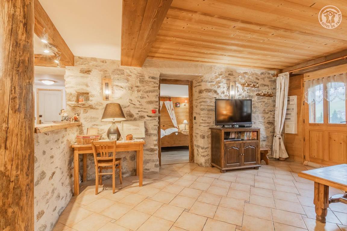„Nous avons passé une très bonne semaine dans ce gîte aménagé avec soin au rez de chaussée d'un vieux chalet d'alpage à flanc de montagne. Nos plus proches voisines étaient les trois vaches qui faisaient tinter leurs clarines dans la prairie voisine. La vue depuis la terrasse récemment aménagée devant le chalet découvre un paysage verdoyant et reposant sur les crêtes herbeuses qui montent des Saisies vers le col du Joly. Les pentes herbeuses sont parsemées de vieux chalets. Un petit coin de paradis...Et, en ces jours de canicule sur une grande partie de la France, même s'il a fait chaud en pleine journée, l'intérieur du gite a gardé sa fraicheur. Un luxe...“