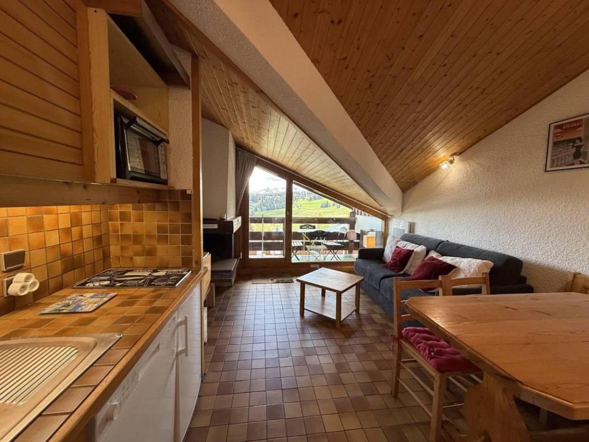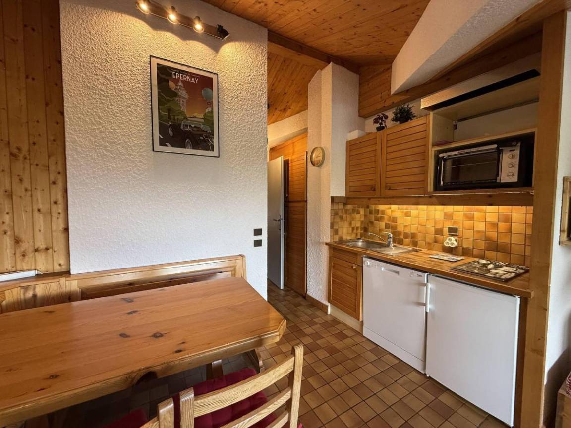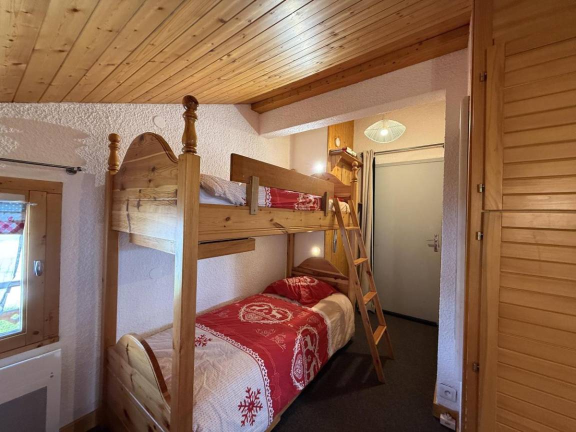 Die Residenz Mont Blanc B befindet sich im Ferienort Saisies. Sie ist ideal gelegen, nur 100 Meter von Geschäften und Wanderwegen entfernt. Sie werden die Zweckmäßigkeit und die warme Atmosphäre dieser Residenz zu schätzen wissen. Fläche von ungefähr 32 m² enthält 5 m² unter 1,80 m. 4te Etage. Orientierung : Süd. Blick skipisten und Berg (Massif du beaufortain). Wohnzimmer mit BZ-Sofas, Kamin (non utilisable). offener Schlafbereich mit Doppelbett, 2 Stockbetten. Kochnische mit Kaffeemaschine, Geschirrspülmaschine, kleiner Backofen, Herdplatten, Kühlschrank. Waschräume mit Dusche. separates WC. Balkon. Die oberen Betten sind nicht für Kinder unter 6 Jahren geeignet.
