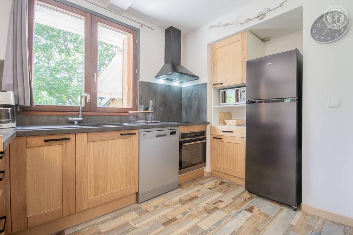 Haus mit 4 Gîtes auf mehreren Ebenen. Einstöckiges Ferienhaus. Wohnküche (1 Schlafsofa 140x190 cm). 3 Schlafzimmer (1 Doppelbett 140x190 cm / 1 Doppelbett 140x190 cm / 2 Einzel-Etagenbetten 90x190 cm + 2 Einzel-Etagenbetten 90x160 cm). 2 Badezimmer (Duschen) mit WC. Private Terrasse. Gemeinsamer Garten und gemeinsamer Swimmingpool. Privater Parkplatz. Miete von Bettwäsche, Handtüchern und Endreinigung: Wenden Sie sich direkt an die Eigentümer. Tiere auf Anfrage und nach Zustimmung des Eigentümers.
