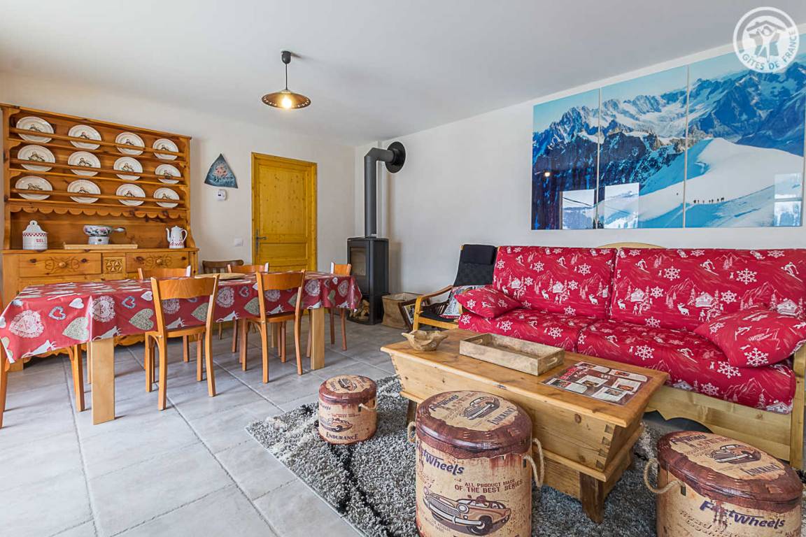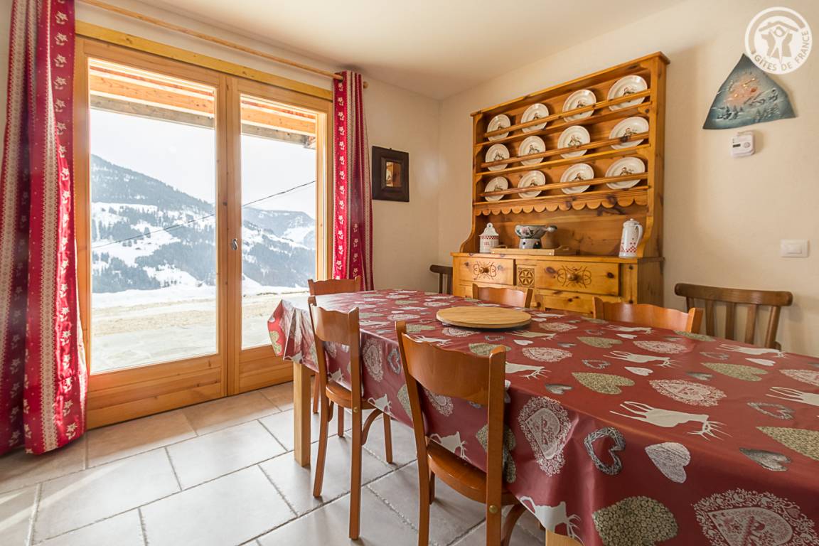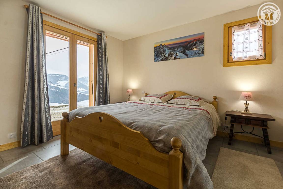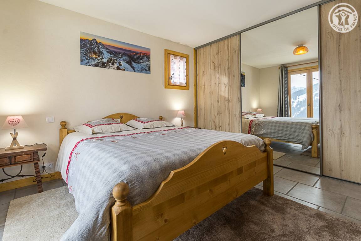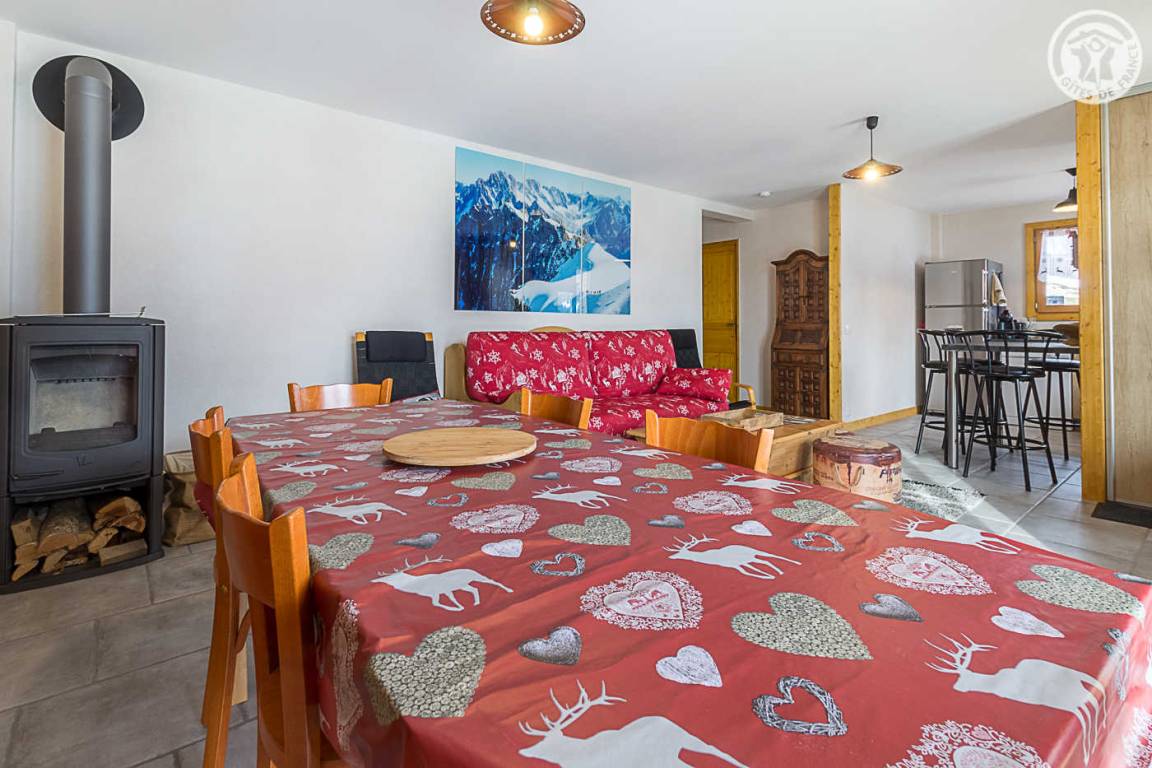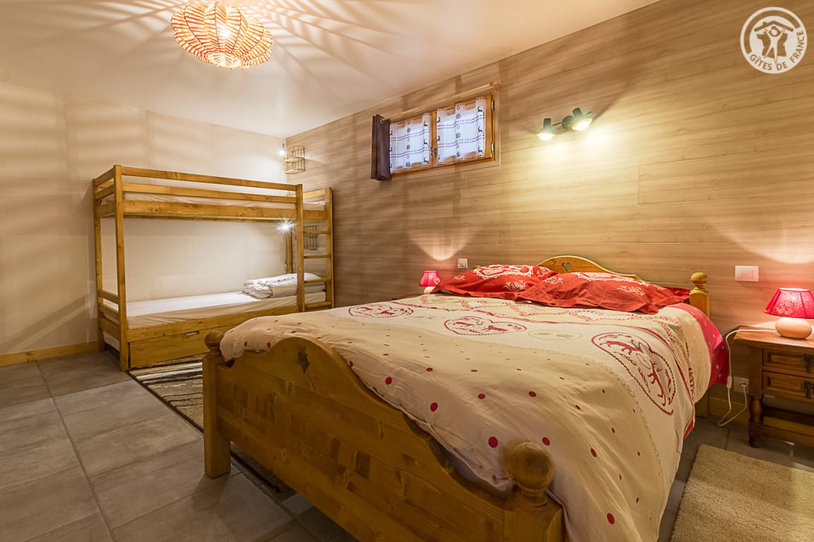 Gîte im Erdgeschoss eines Chalets. Bodengleiches Gehäuse. Wohnküche (Sofa umwandelbar in ein 160x200cm Bett) mit Holzofen (Holz inklusive). 2 Schlafzimmer (1 Schlafzimmer 1 Doppelbett 160x200cm / 1 Schlafzimmer 1 Doppelbett 140x190cm + 2 Etagenbetten + 1 Einzelausziehbett). 1 Badezimmer (Dusche mit Thermostathahn). Separates WC mit Waschbecken. Waschküche (Waschbecken + Waschmaschine kombiniert mit Trockner). Stauraum für Outdoor-Ausrüstung (Ski, Fahrräder, etc.). Bettwäsche inklusive + Betten bei Ankunft gemacht. Handtuchverleih. Bluetooth Lautsprecher. Private geschlossene Garage. Südterrasse.