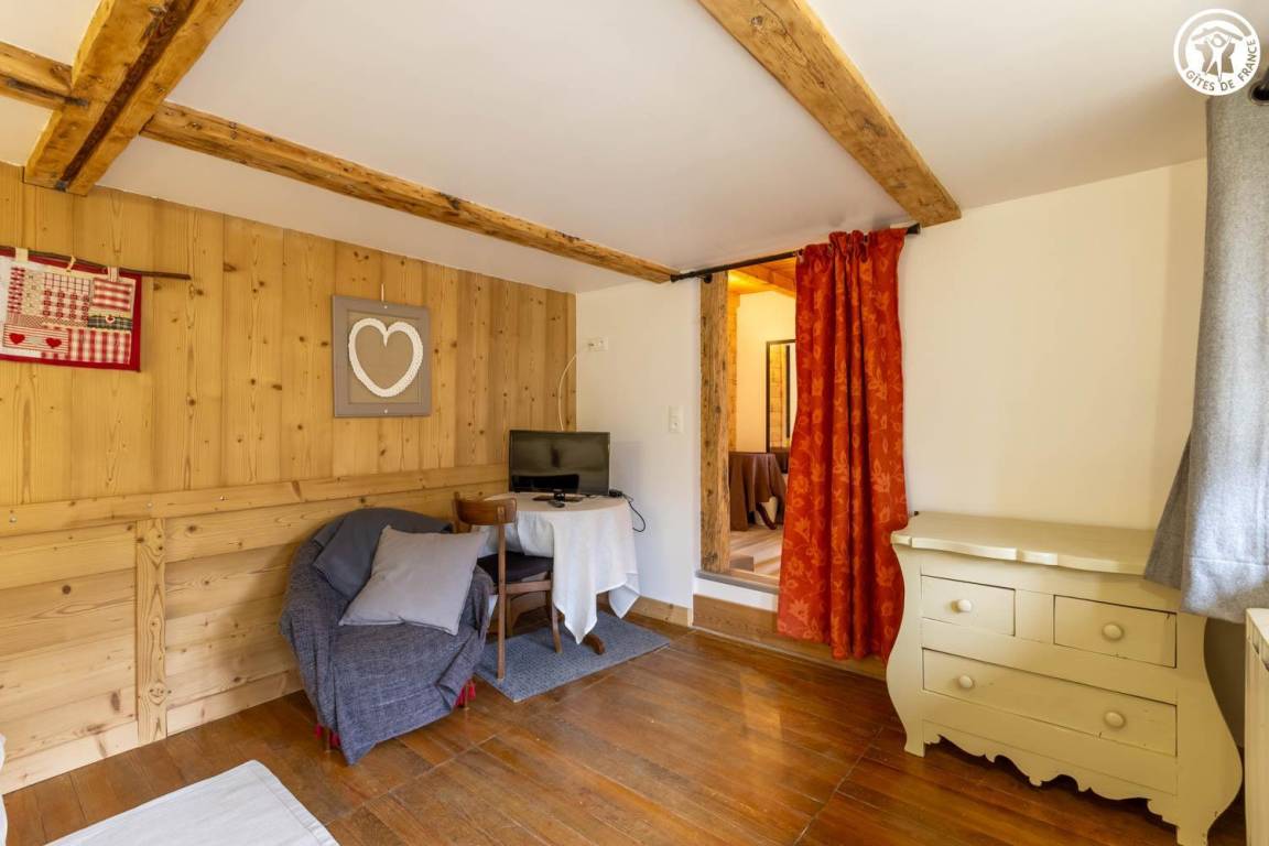 „Chalet traditionnel parfaitement rénové. Typique, vue Mont-blanc. Navettes gratuites à 200m. Séjour très agréable.“