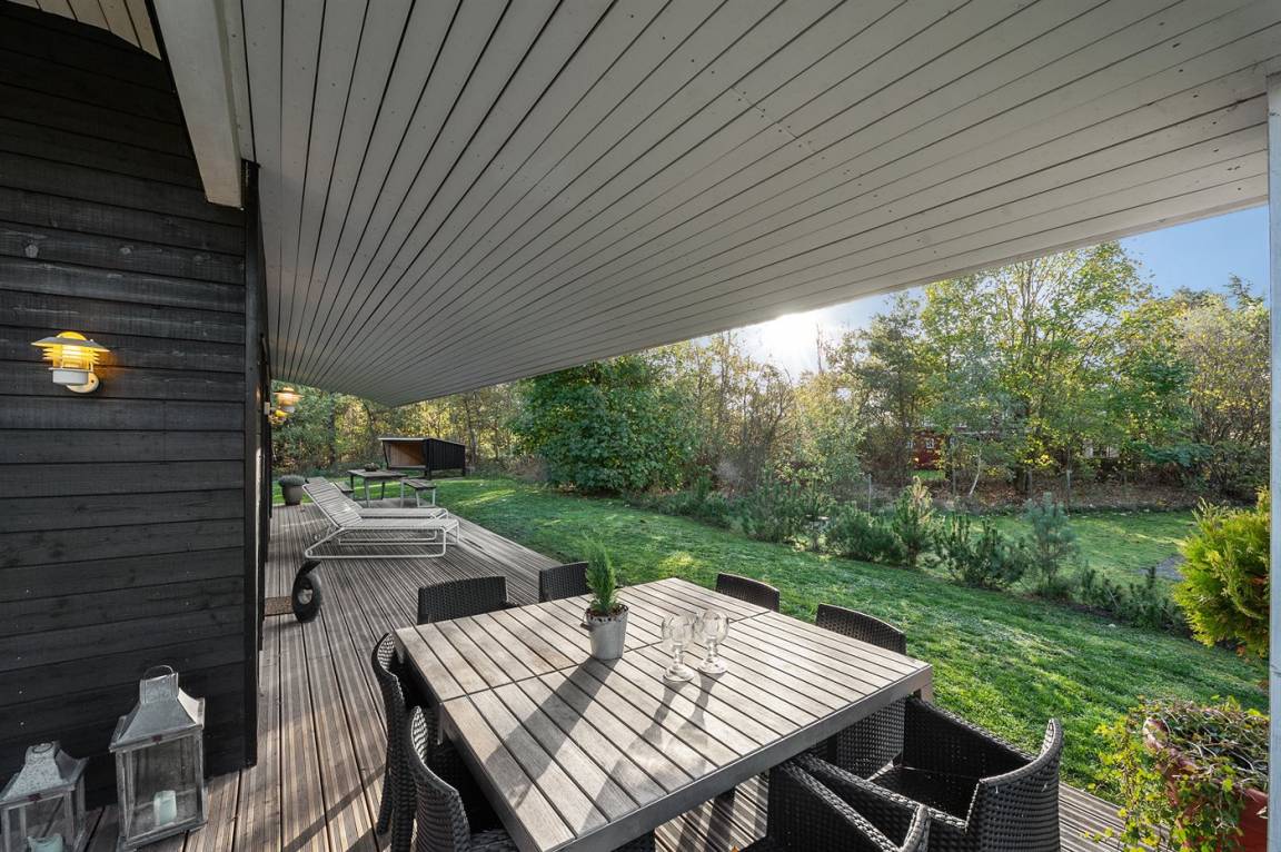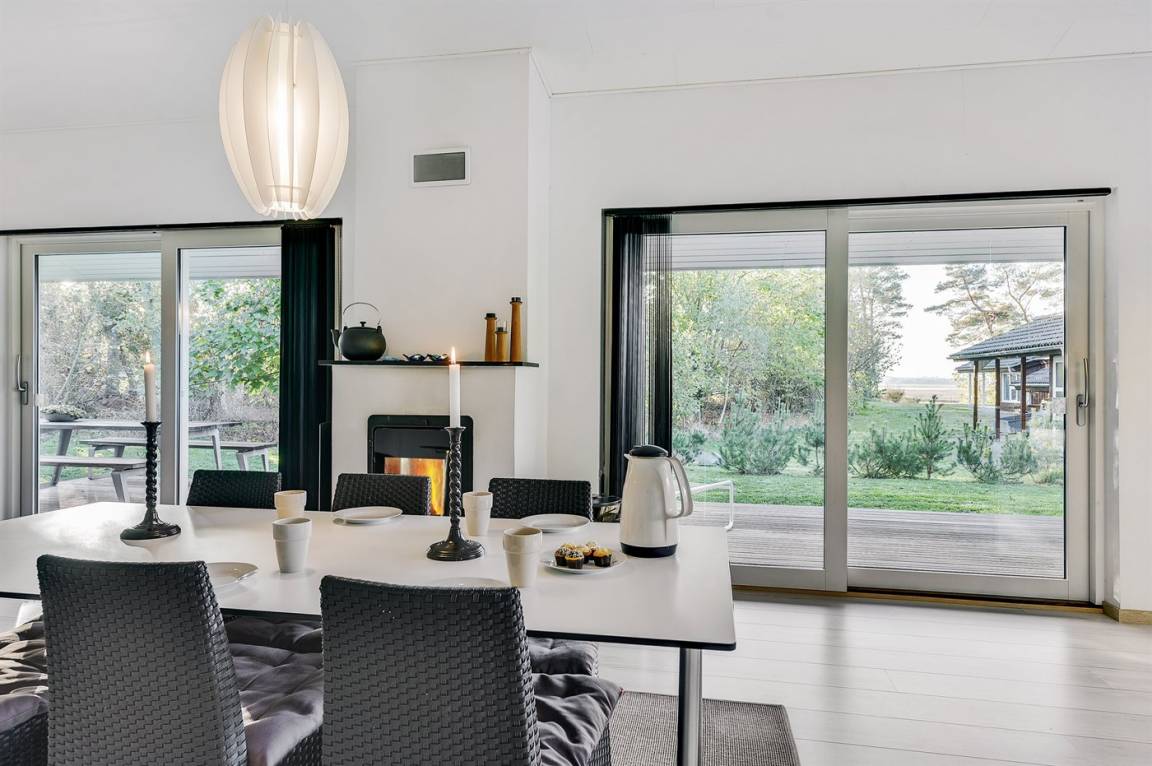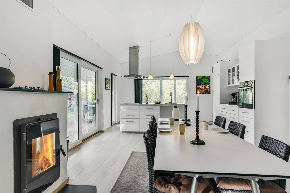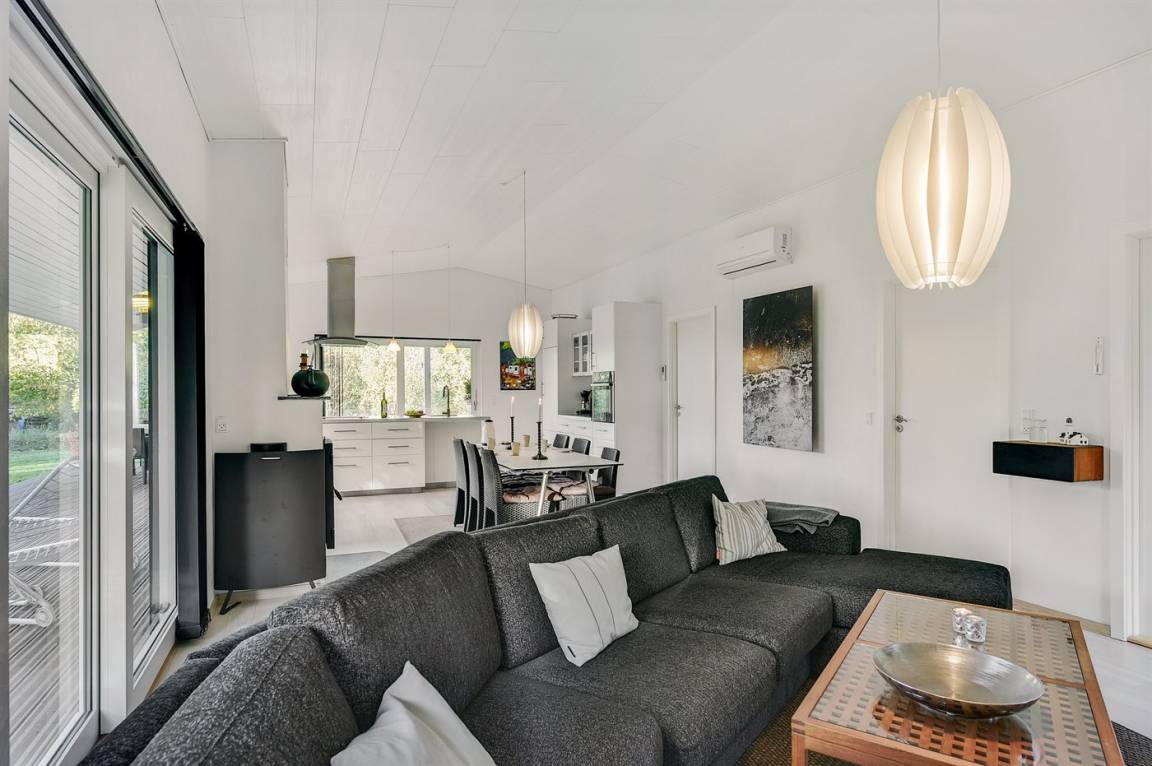 DraußenDie Ferienunterkunft liegt auf einem 1250 m² großen Naturgrundstück. Die Entfernung zum Fjord beträgt 400 m. Die nächste Einkaufsmöglichkeit liegt 3000 m entfernt. Außerdem gibt es 43 m² überdachte Terrasse. Geräteraum. Parkplatz auf dem Grundstück.