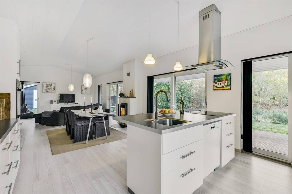 Dieses neu erbaute Ferienhaus mit Aussicht auf das Wasser sowohl vom Haus als auch vom Grundstück, liegt auf einem teilweise abgeschirmten und ungestörten Grundstück. Das Haus liegt in einer Sackgasse in naturschöner Umgebung in einem Waldgebiet an der Ecke von der Förde "Randers Fjord" und Kattegat.