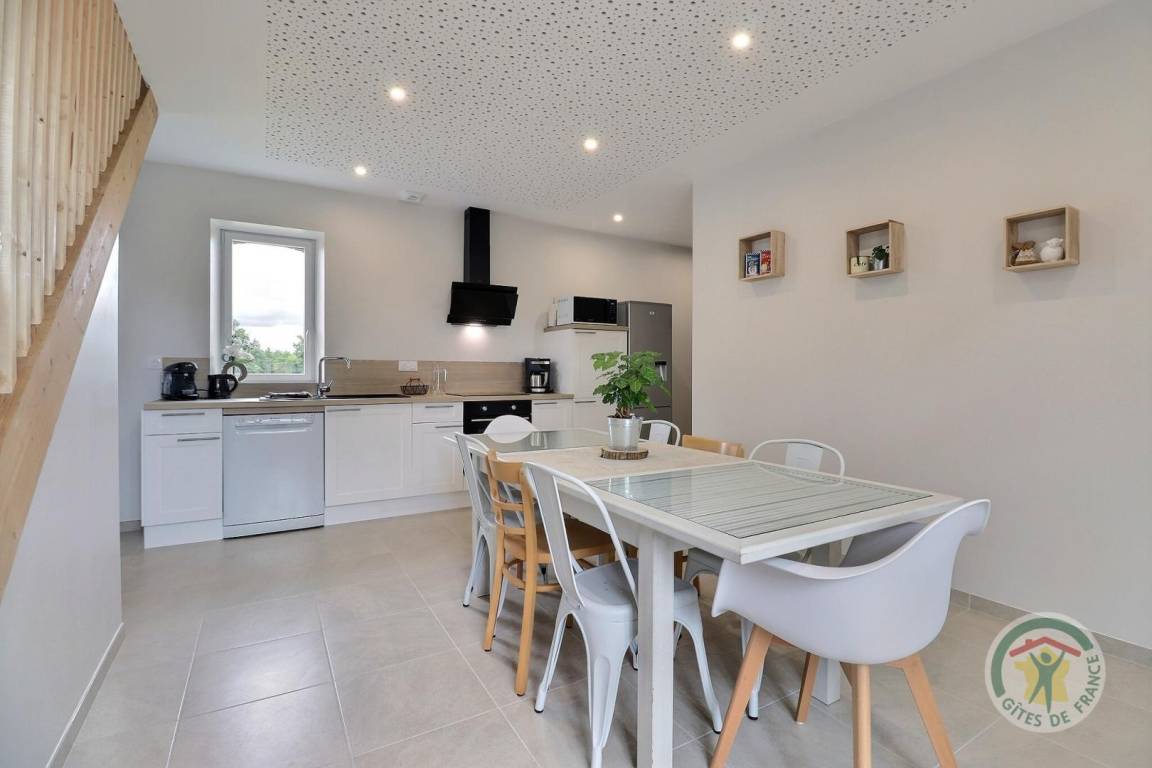 „Séjour parfait Accueilli par nos charmants hôtes Amandine et Vincent dans un Gite très agréable Maison confortable, en pleine nature, joliment décorée, spacieuse bien agencée, et surtout bien isolée de la chaleur. Séjour vélo très réussi. Merci“