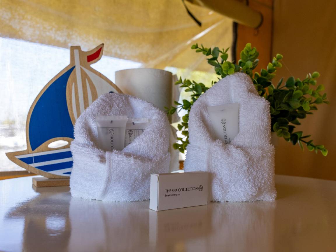 Hausbeschreibung : Entscheiden Sie sich für einen unvergesslichen Urlaub in einem echten Safarizelt. Hier genießen Sie von Ihrer privaten Terrasse aus den schönen Blick auf den Yachthafen und die vorbeifahrenden Boote. Die Unterkunft ist komplett ausgestattet mit 2 Schlafzimmern, einer Küche und bequemen Möbeln. Sie können die modernen Einrichtungen des Yachthafens nutzen, wie z. B. ein Gemeinschaftsbad. Nehmen Sie ein Bad im Wasser oder gehen Sie in 10 Minuten zum schönen Strand. Komfort und Natur!