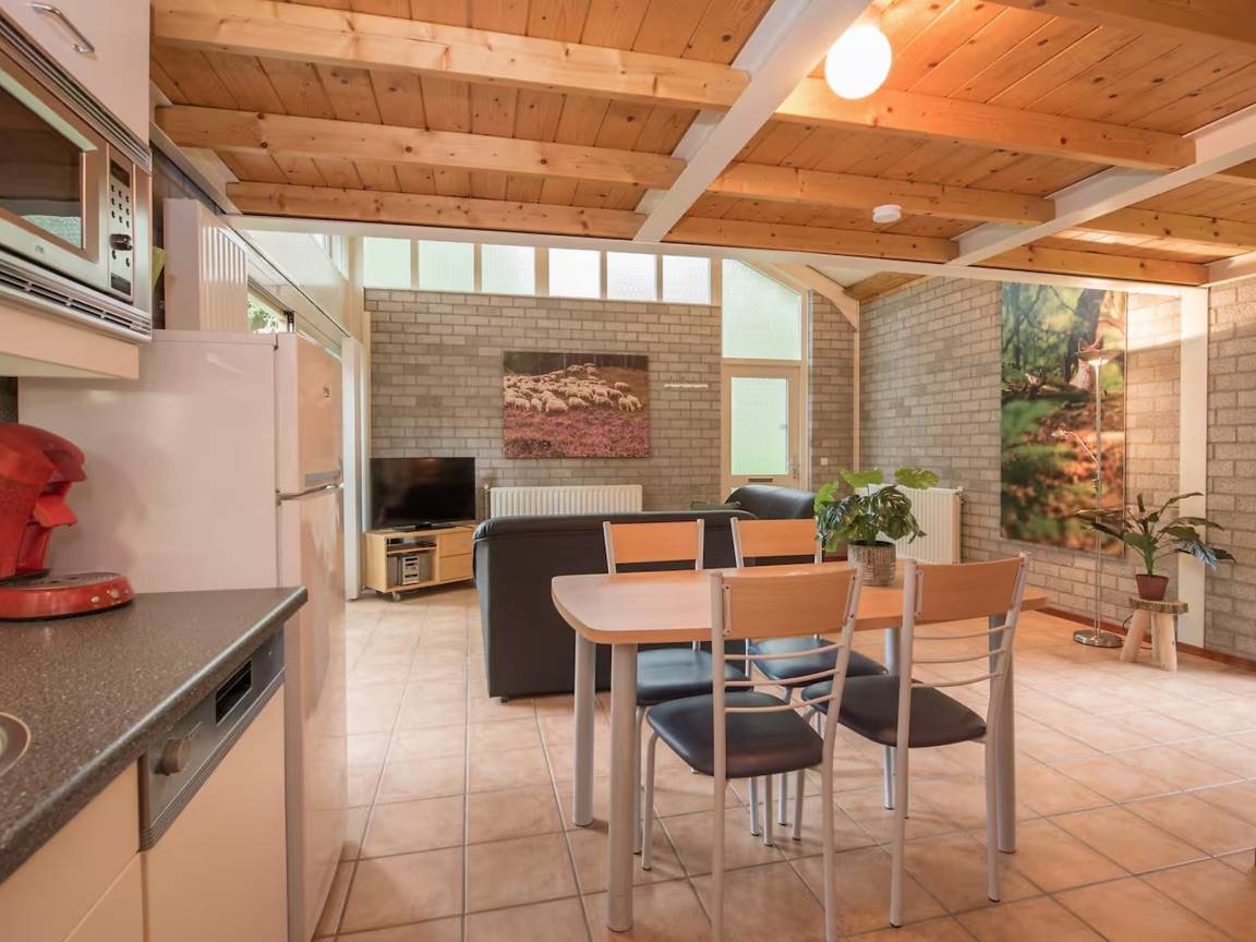Layout : Parterre: offene Küche mit Kochplatte, Wasserkocher, Kochherd, Kaffeemaschine(senseo pads), Kombi-Mikrowelle, Geschirrspüler, Kühlschrank, Tiefkühlschrank , Wohn/Esszimmer mit TV, Esstisch(4 Personen), Sitzecke , Badezimmer mit Dusche, Waschbecken, Toilette
