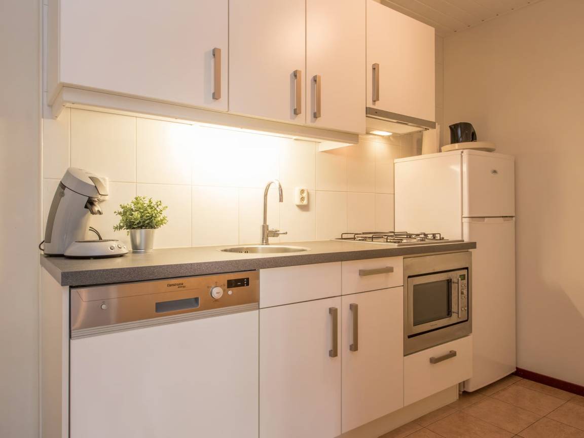 Layout : Parterre: Eingang, offene Küche mit Kochplatte, Wasserkocher, Kaffeemaschine(senseo pads), Kombi-Mikrowelle, Geschirrspüler, Kühlschrank, Tiefkühlschrank , Wohn/Esszimmer mit Esstisch, Sitzecke , Schlafzimmer mit Doppelbett , Badezimmer mit Dusche, Waschbecken, Toilette