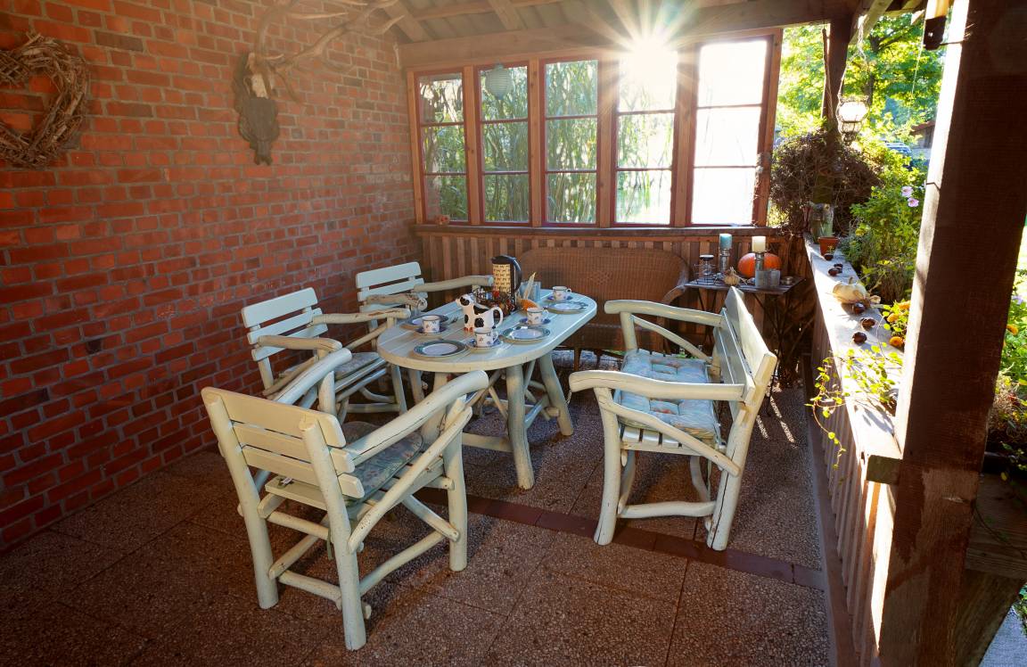 Die Sonnenterrasse, die überdachte Veranda und der großzügige Garten runden das Urlaubserlebnis ab.