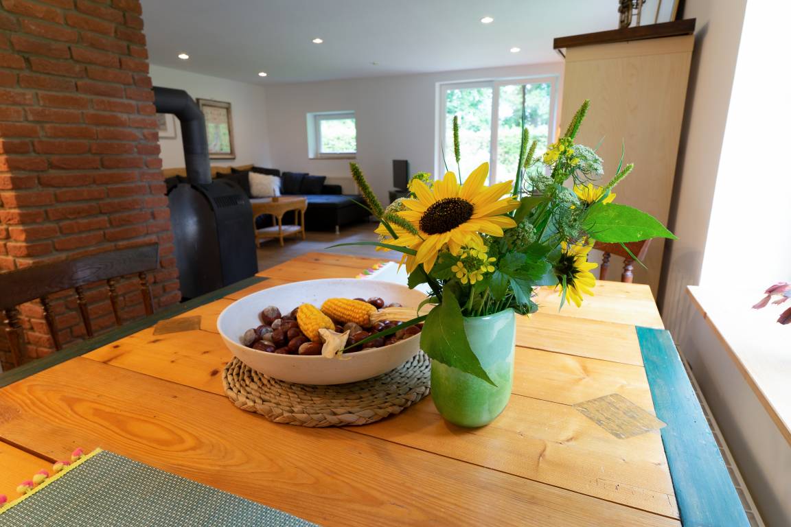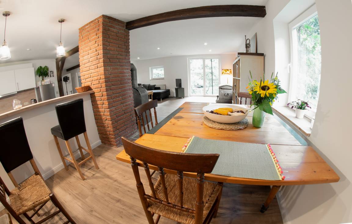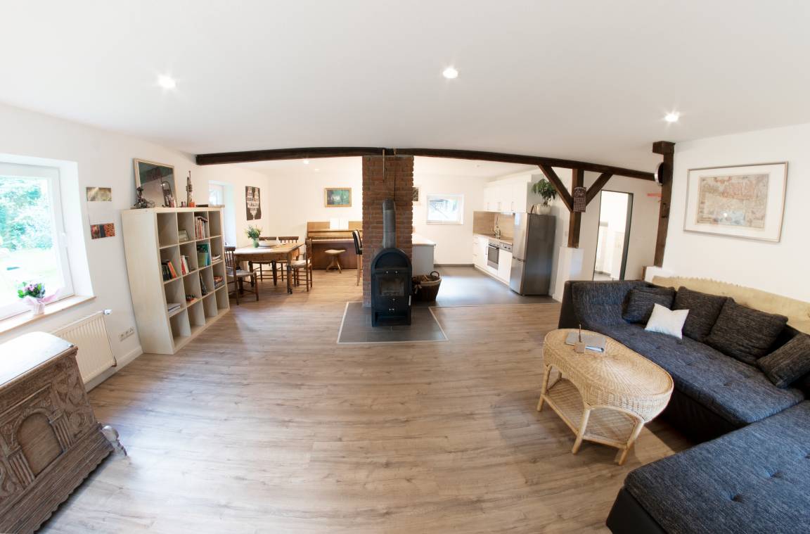 Unser Ferienwohnung im Jägerhaus wurde frisch renoviert und ist für Familien oder kleine Gruppen aber auch für Pärchen sehr gut geeignet. Entspannen in der Sauna oder am Kamin oder aktiv die Gegend erkunden, mit Rad oder Pferd, wie auch zu Fuß den Nordpfad entlang zur alten Kloster Mühle nach Kuhmühlen.
