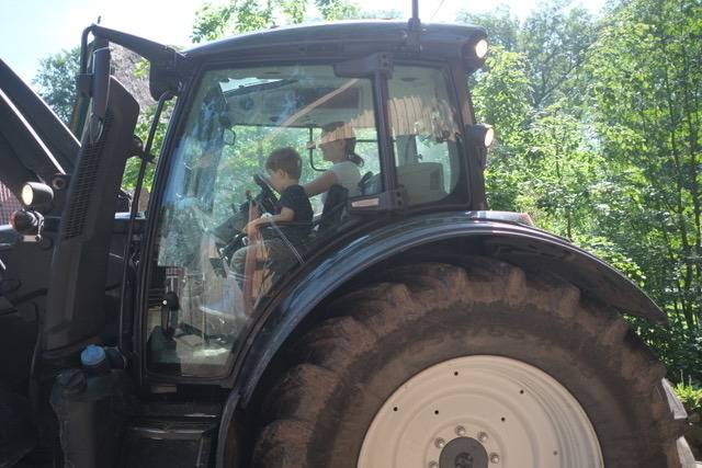 Es gibt ein großes Holzpferd und Fahrzeuge zum spielen.