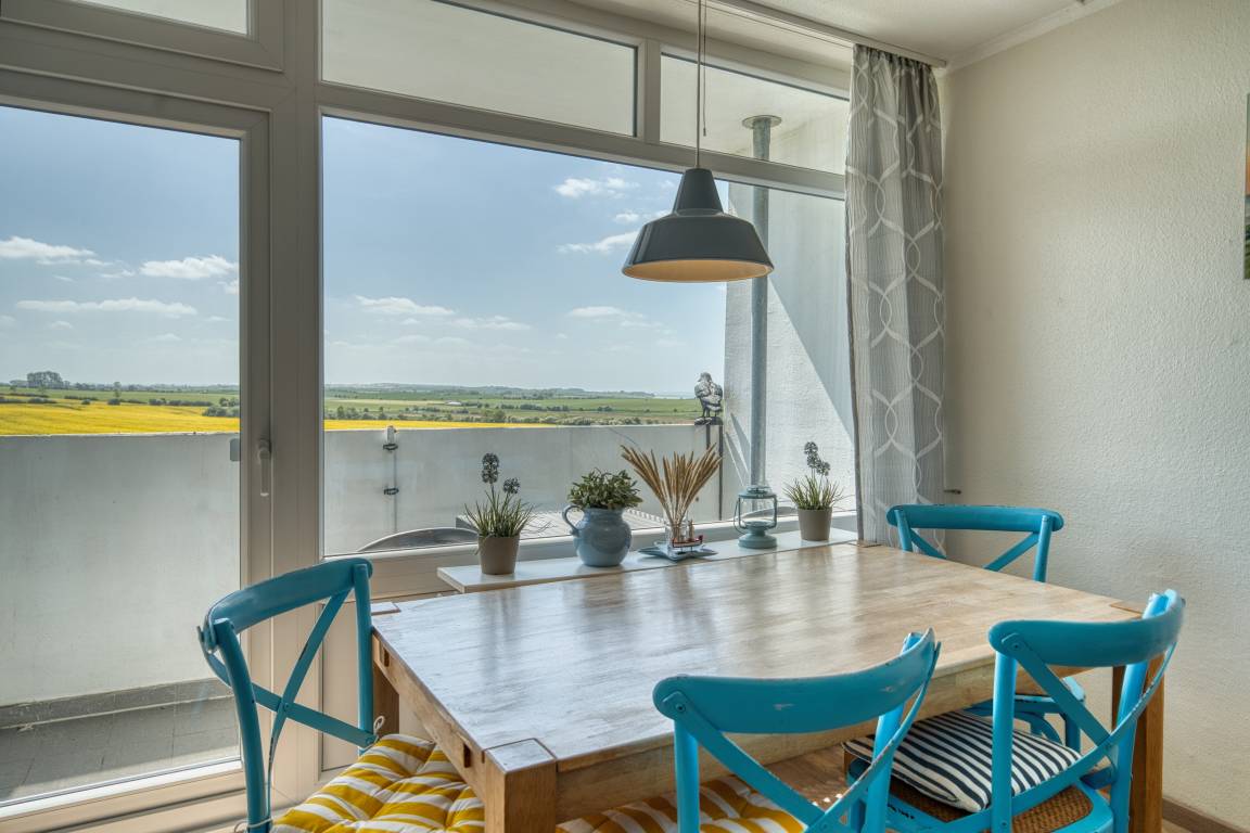 Erleben Sie erholsame Urlaubstage in dieser charmanten Ferienwohnung im Haus K des Ferienparks Heiligenhafen. Die Wohnung liegt in der 8. Etage und bietet auf 45 m² Wohnfläche eine helle und freundliche Atmosphäre. Der Südbalkon gewährt einen weiten Blick auf die gepflegten Grünanlagen – perfekt für Sonnenstunden und entspannte Auszeiten.