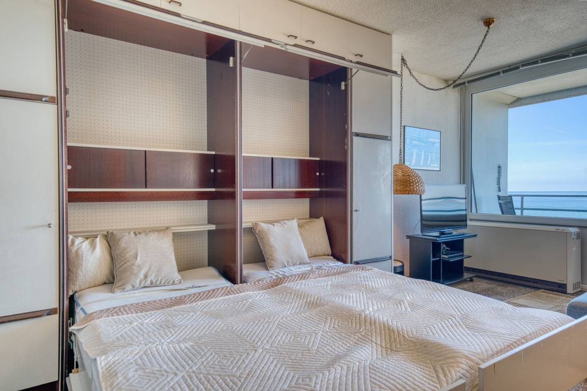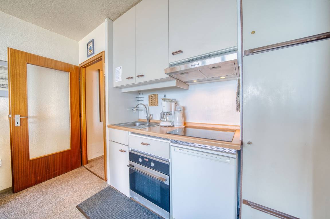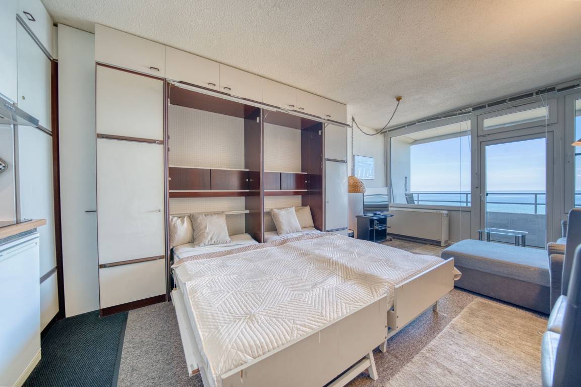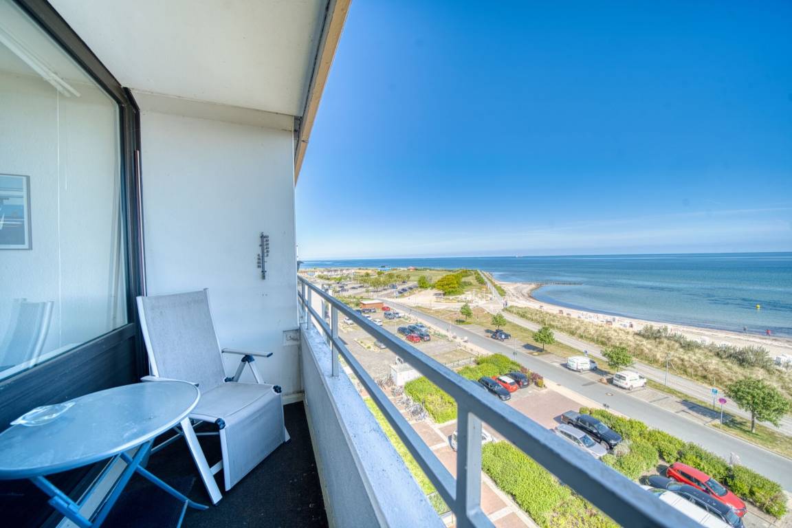 Diese gemütliche Ferienwohnung im 6. Geschoss des Hauses Steinwarder 37 bietet auf ca. 30 m² Platz für bis zu zwei Personen und einen schönen Blick auf die Ostsee. Der kombinierte Wohn-Schlafraum ist mit Schrankbetten ausgestattet, ergänzt durch eine Pantryküche, ein Badezimmer und einen Balkon mit Ostseeblick.