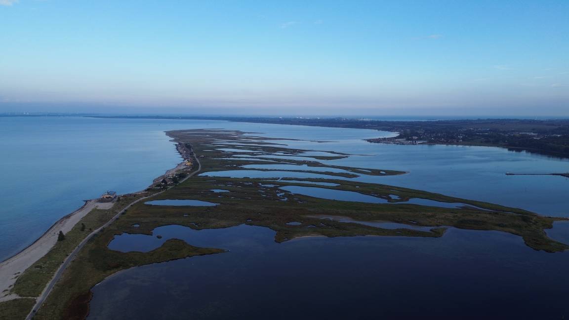 The floor-to-ceiling windows provide plenty of natural light to the living and dining area and you may gaze over the idyllic invested dune landscape up to the lake.