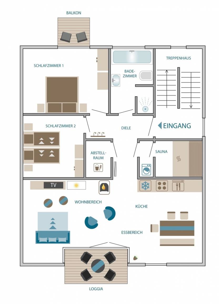 Helle hohe Räume mit einer modernen hochwertigen Ausstattung werden keine Wünsche offen lassen. Gönnen Sie sich Stunden der Entspannung in Ihrer eigenen Sauna. Ein prasselndes Holzfeuer im Kamin sorg nicht nur im Winter für eine wollige Wärme und eine heimelige Atmosphäre. Geniessen Sie hier das ganze Jahr über Ihre wundervolle Urlaubstage an der Ostsee.