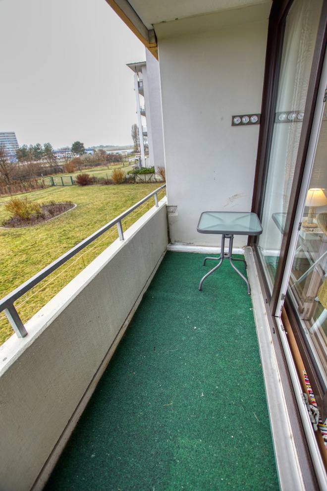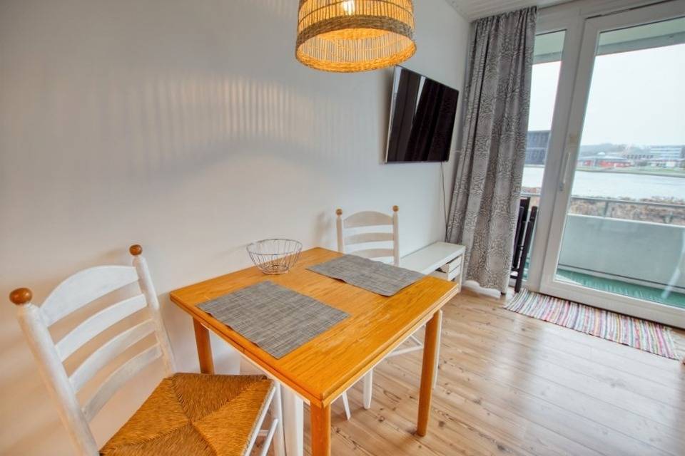 Erleben Sie einen erholsamen Urlaub in der gemütlichen 30 m² großen Ferienwohnung im Appartementhaus „Schöne Aussicht" in Heiligenhafen – ideal für zwei Personen. Die strandnahe Wohnung bietet einen Wohn-Schlafraum mit komfortablem Doppelbett sowie einen Balkon mit Blick auf den Binnensee.