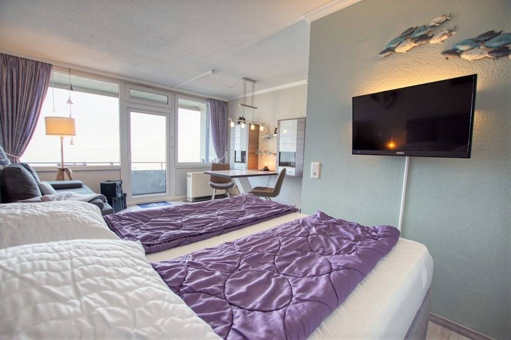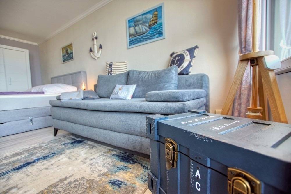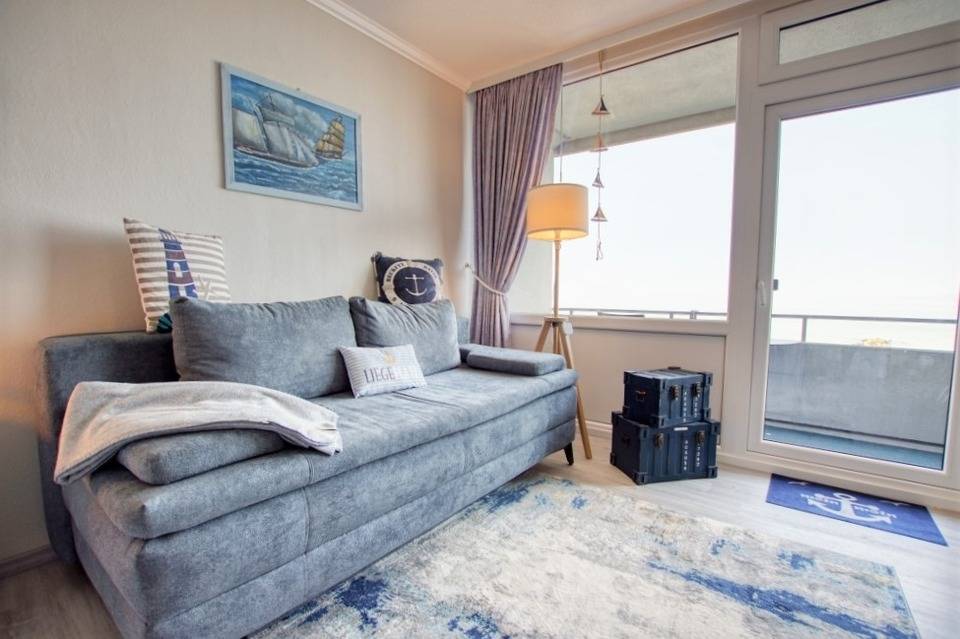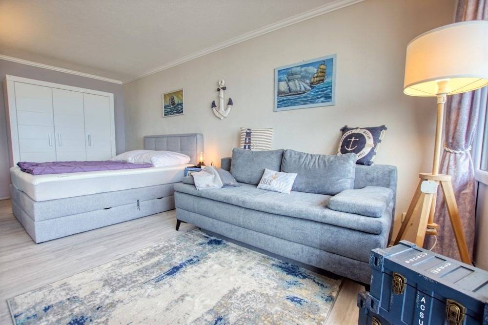 Die Wohnung verfügt über Wohn-/Schlafbereich mit Boxspringbett (160×200 cm), Vinylboden und Smart-TV, Küchenzeile mit Ceranfeld, Duschbad und Balkon mit Ostseeblick. Kostenloses WLAN, gemeinschaftlicher Fahrradkeller, eigener Pkw-Stellplatz. Nichtraucherwohnung, keine Haustiere. Strand ca. 10 m, Ferienpark mit Geschäften, Restaurants und Freizeitangeboten ca. 5 Minuten entfernt.