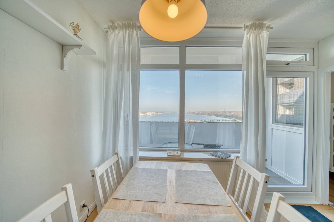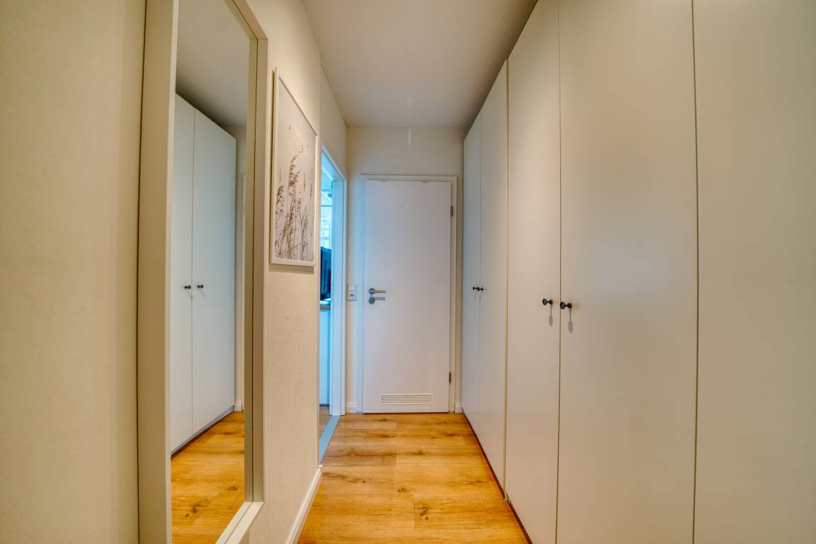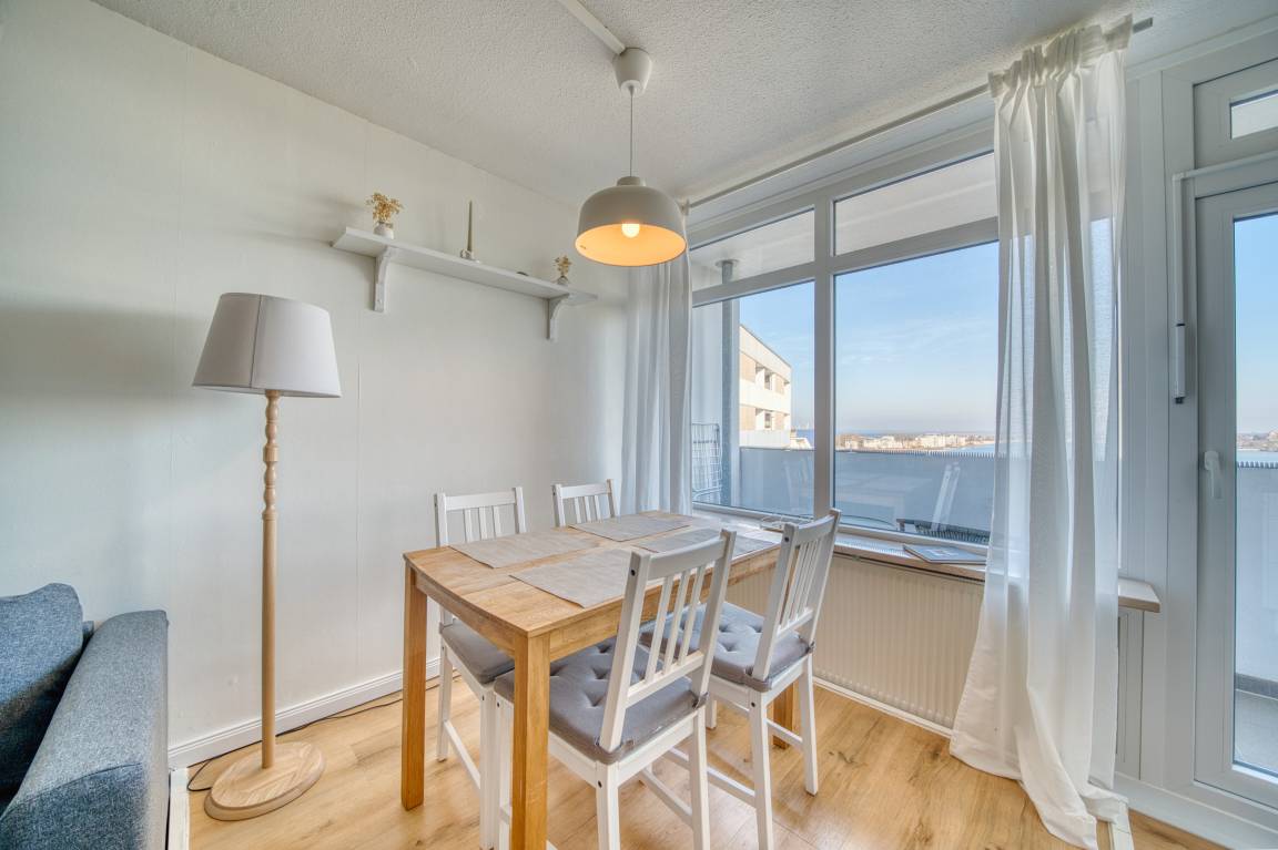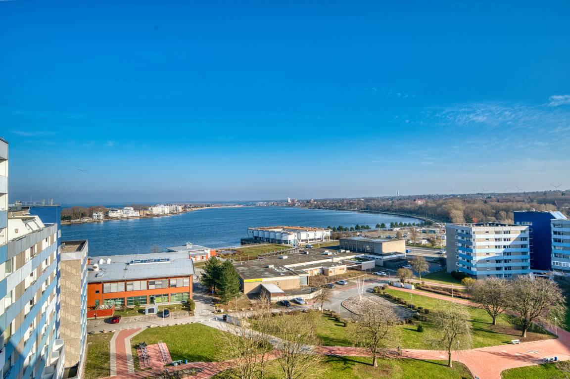 Die Ferienwohnung im Haus E, 11. Etage, mit Balkon, bietet viel Platz und einen traumhaften Blick auf die Ostsee sowie den großen Binnensee. Genießen Sie Ihr Frühstück mit Sonnenaufgängen oder den Abend durch ein buntes Farbenspiel rund um den Binnensee.
