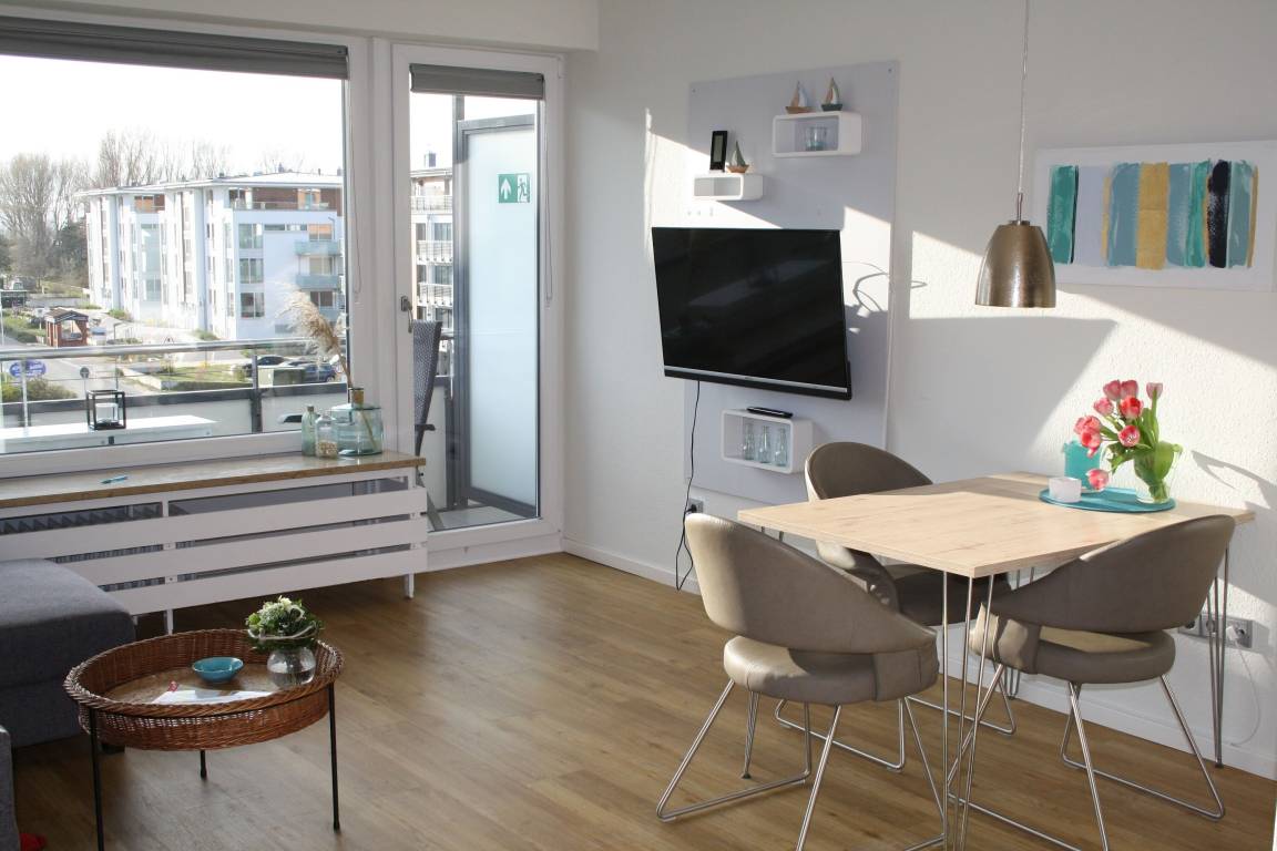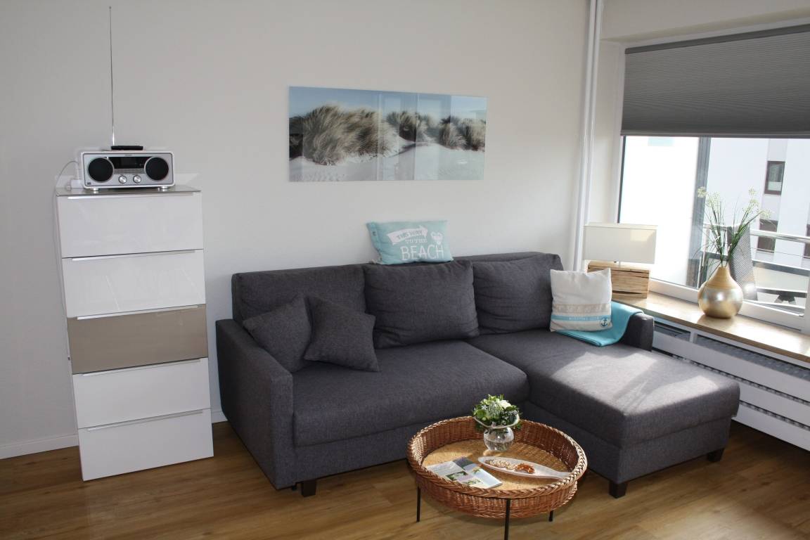 Herzstück der Wohnung ist der helle Wohn- und Aufenthaltsbereich, der freundlich eingerichtet ist und ausreichend Platz für entspannte Stunden bietet. Hier können Sie den Urlaubstag ruhig ausklingen lassen, fernsehen oder einfach die angenehme Atmosphäre genießen. Für Unterhaltung stehen Ihnen TV sowie WLAN / WiFi zur Verfügung.