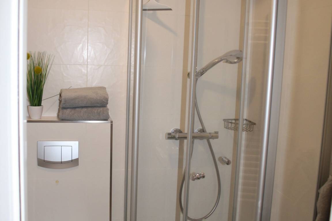 Das Badezimmer ist gepflegt und modern gestaltet und verfügt über eine Dusche, sodass Sie sich nach einem Strandtag oder einer ausgedehnten Radtour bequem erfrischen können.